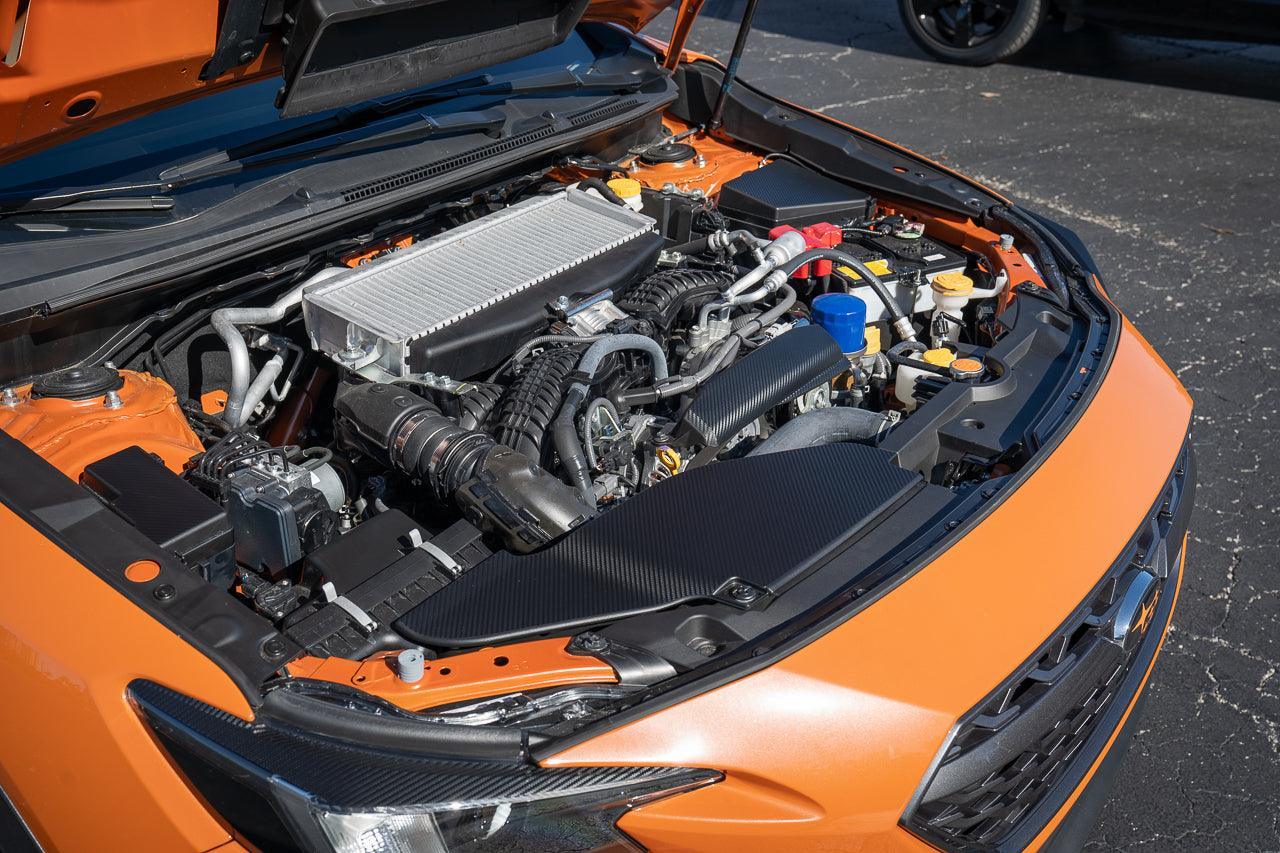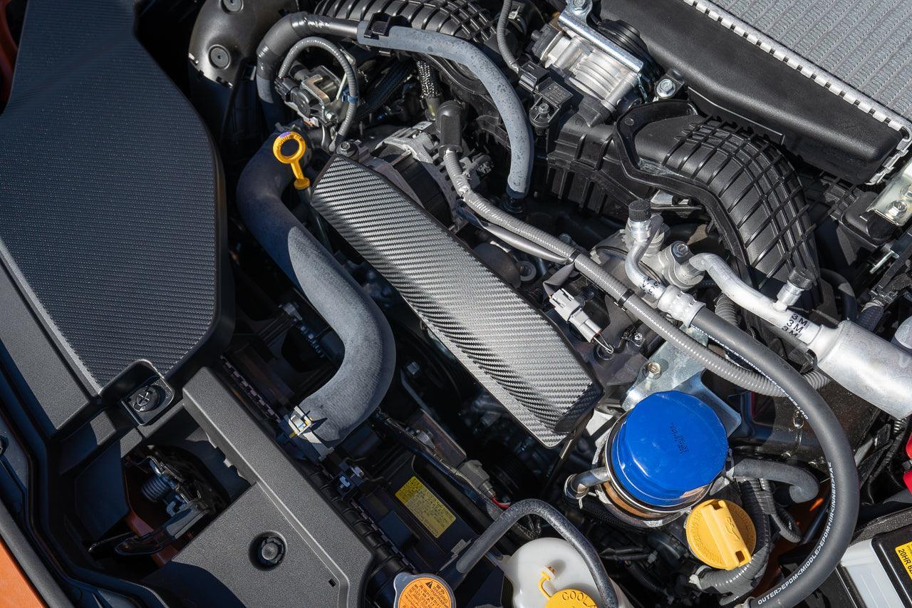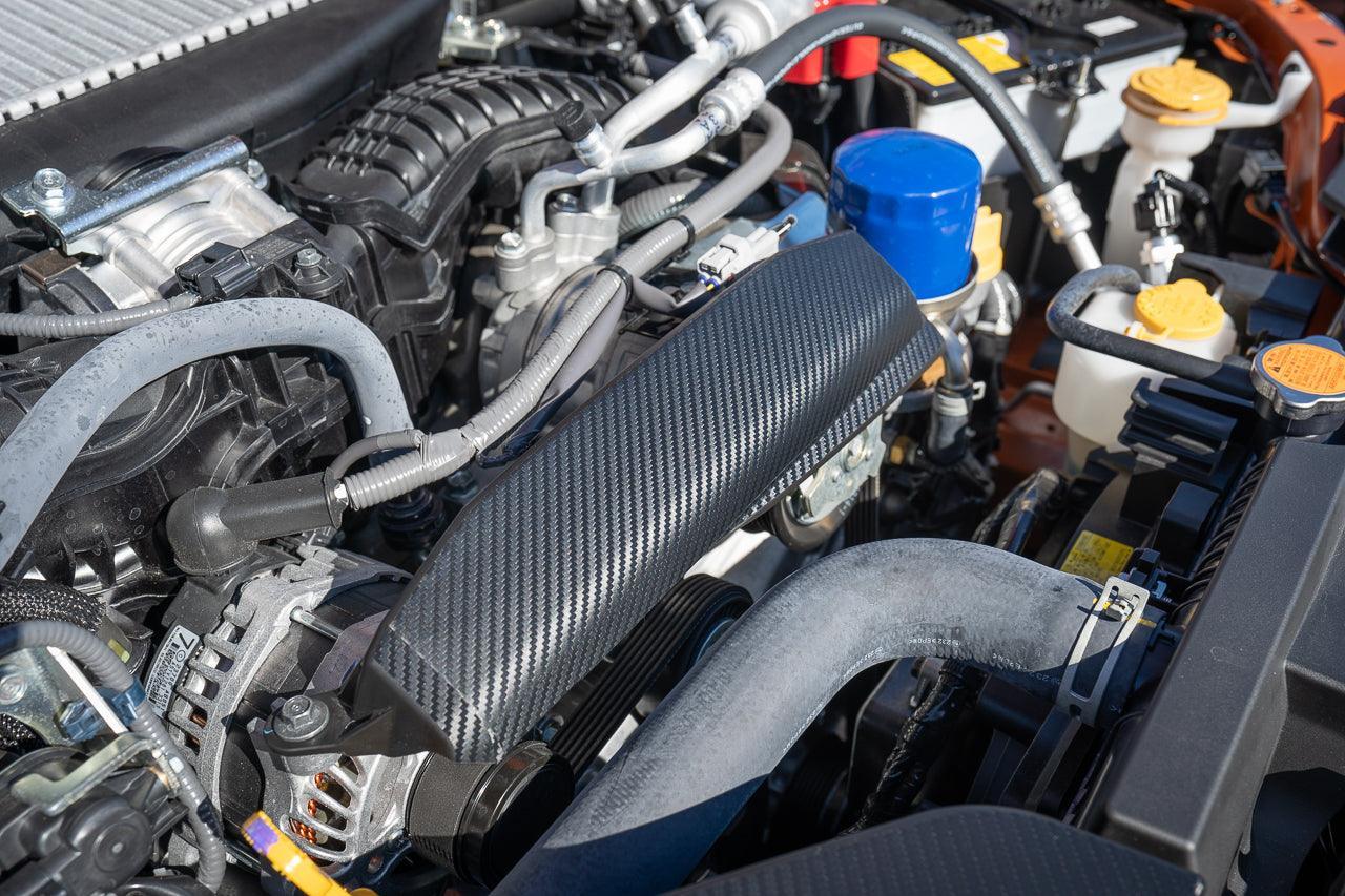 The plain plastics under the hood of the 2022+ WRX can use some subtle bling. The ultra dark, textured 3D carbon that we use is reminiscent of the material Subaru uses in some of their JDM parts.