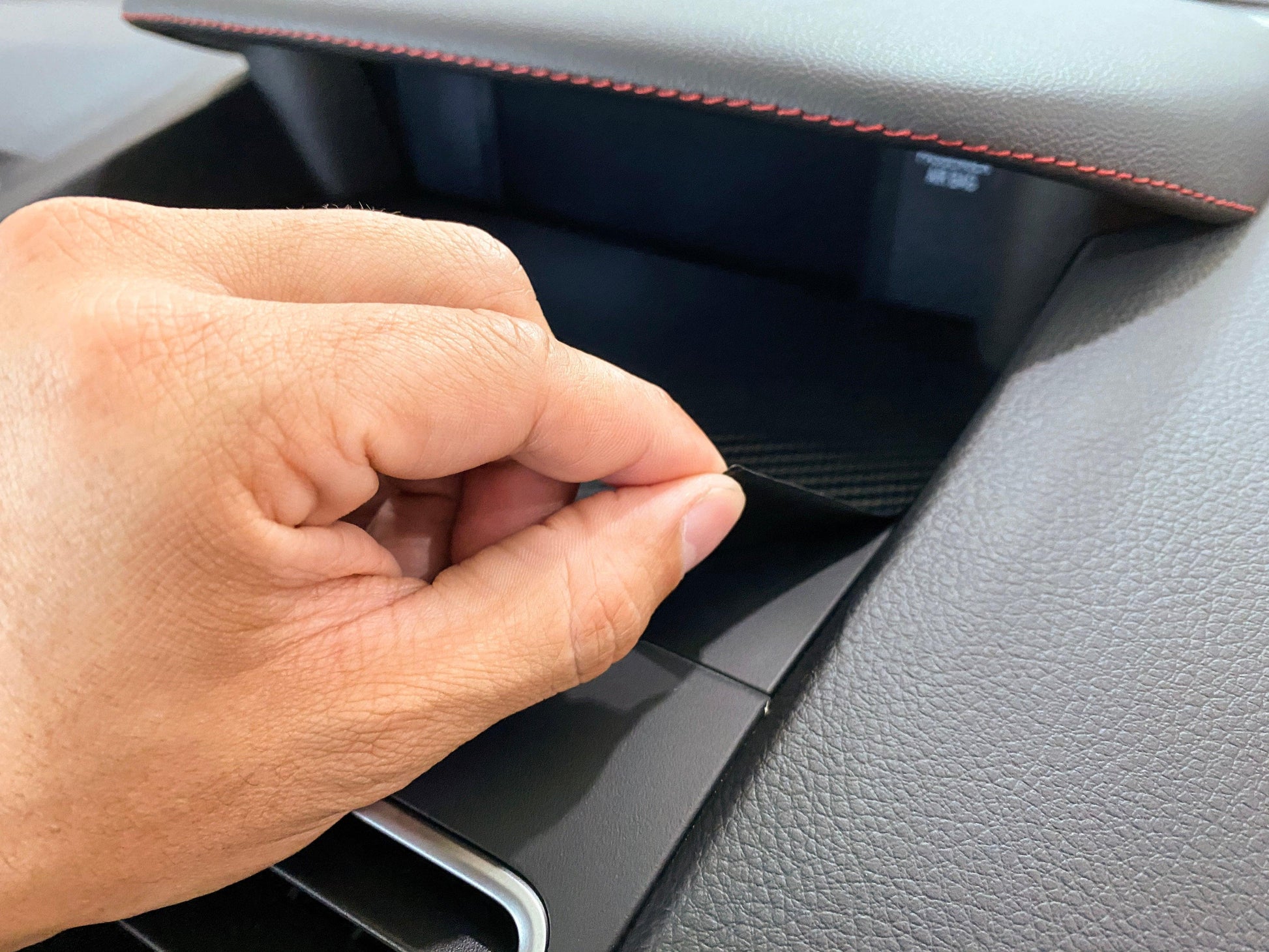 The plain, soft plastics used for the interior of the WRX / STI can look cheap. They actually scratched pretty easily as well. Add a darker, textured carbon fiber appearance with this simple vinyl modification.