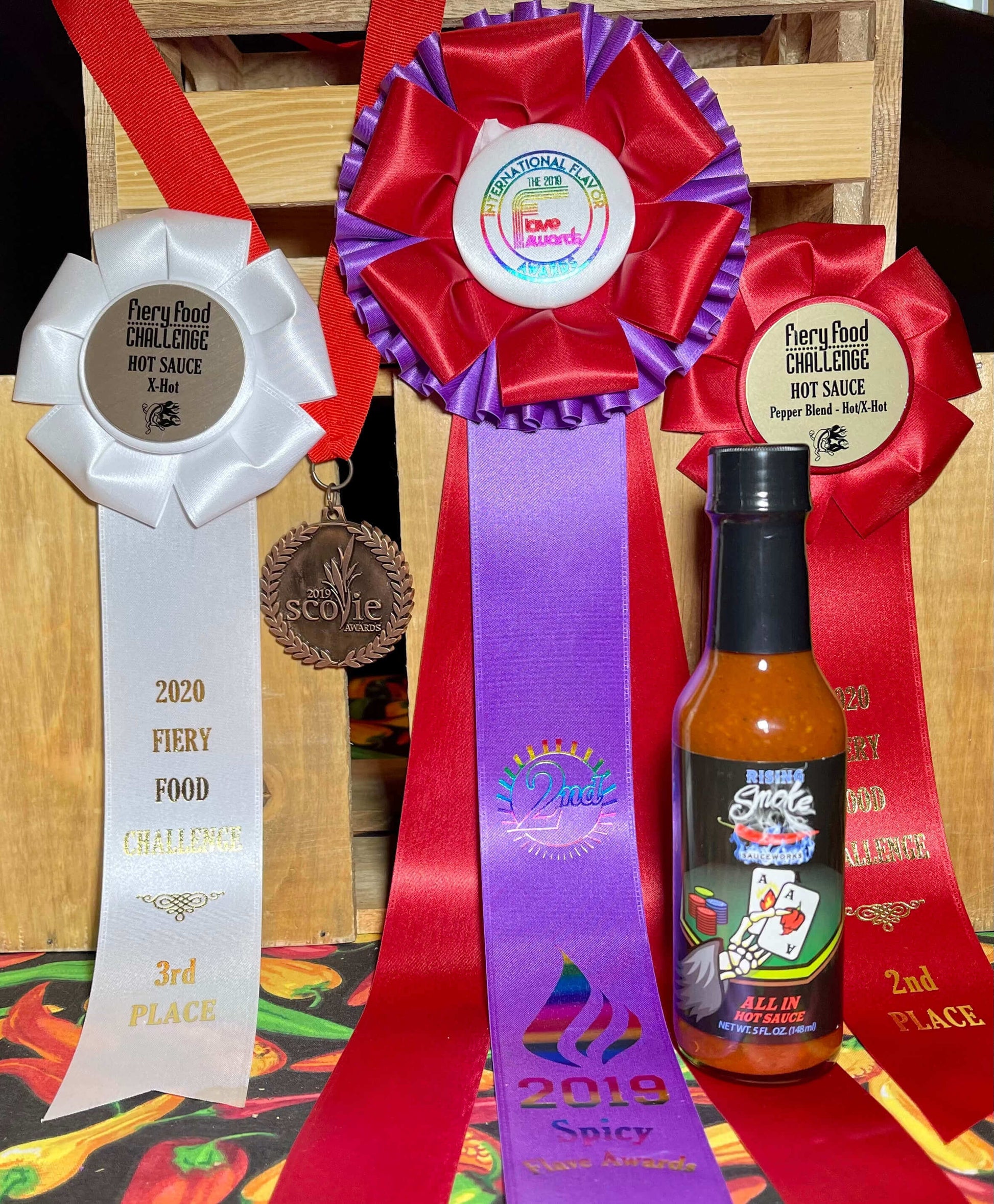 All In is our boldest and most intense hot sauce experience yet. Brace yourself for a fiery fusion of habaneros and ghost peppers, followed by the relentless heat of smoked Carolina Reapers. But this sauce is not just about the scorch – it's a symphony of smoky and savory flavors, thanks to a carefully crafted blend of tomatoes, spices, and a touch of red wine vinegar. Perfect for true chili heads seeking both heat and depth of taste, "All In" is a flavor-packed adventure that ignites your senses from the first drop.
