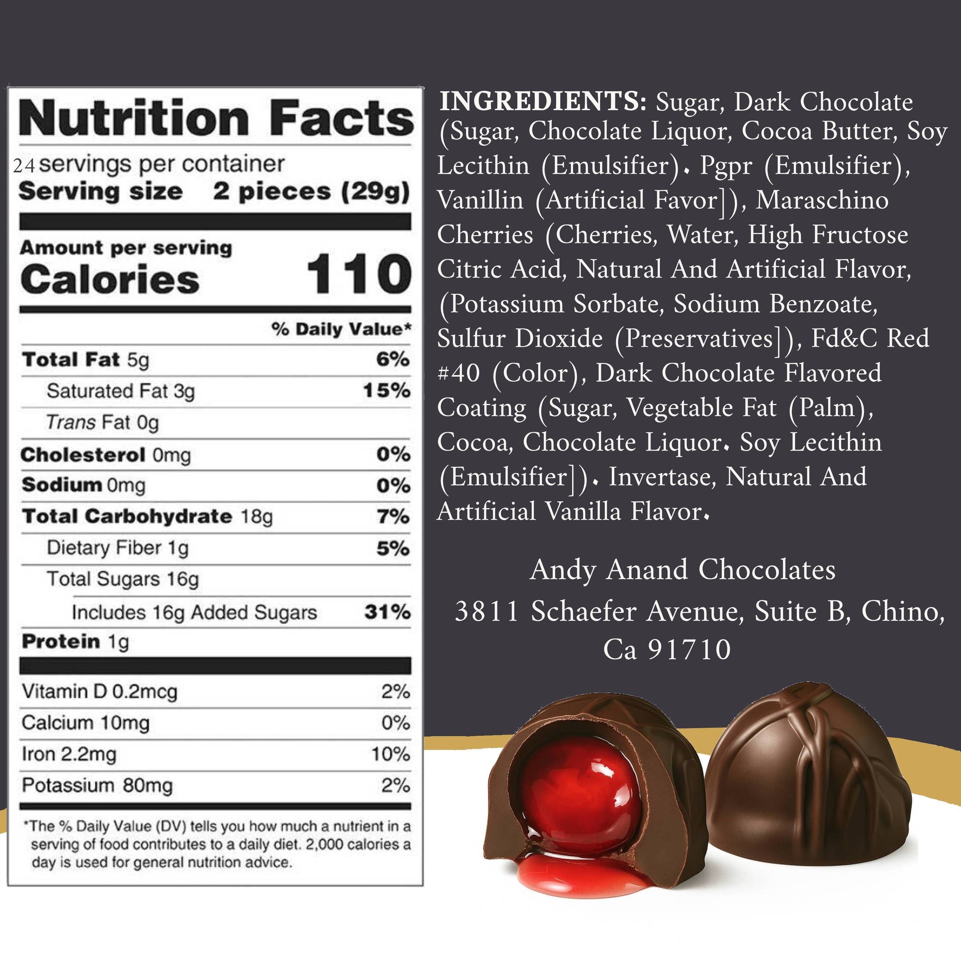 Andy Anand Belgian Dark Chocolate Cherry Cordials – 48 Pcs Vegan Gift Box, Decadent Delicacies Made with 60% Chocolate (Cocoa Butter), Perfect for Gifting and Appreciation