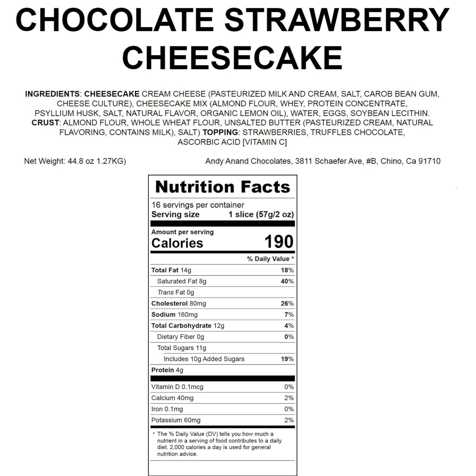 - 🍰At Andy Anand Chocolate Strawberry Cheesecake we believe freshness is everything. That's why our cheesecakes are baked fresh and shipped the same day, using only the finest ingredients with absolutely no preservatives or chemicals. Each Chocolate Strawberry Cheesecake is individually crafted with care, never mass-produced, for a rich homemade flavor and texture you won't find in store-bought desserts. Taste the Andy Anand difference!