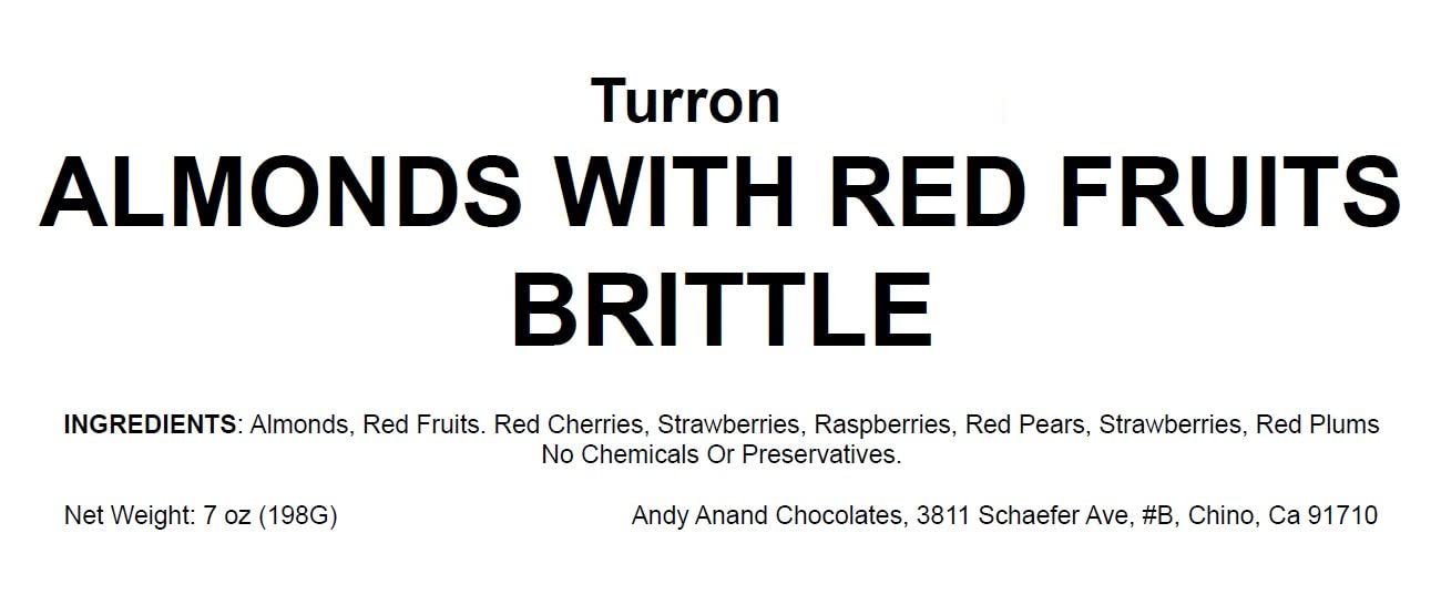 Andy Anand Deliciously Divine Red Fruit Almond Nougat - Brittle Nougat Turron with Wildflower Honey - European Turron Candy - A Traditional Spanish Treat & Sweet Delights – 7 Oz