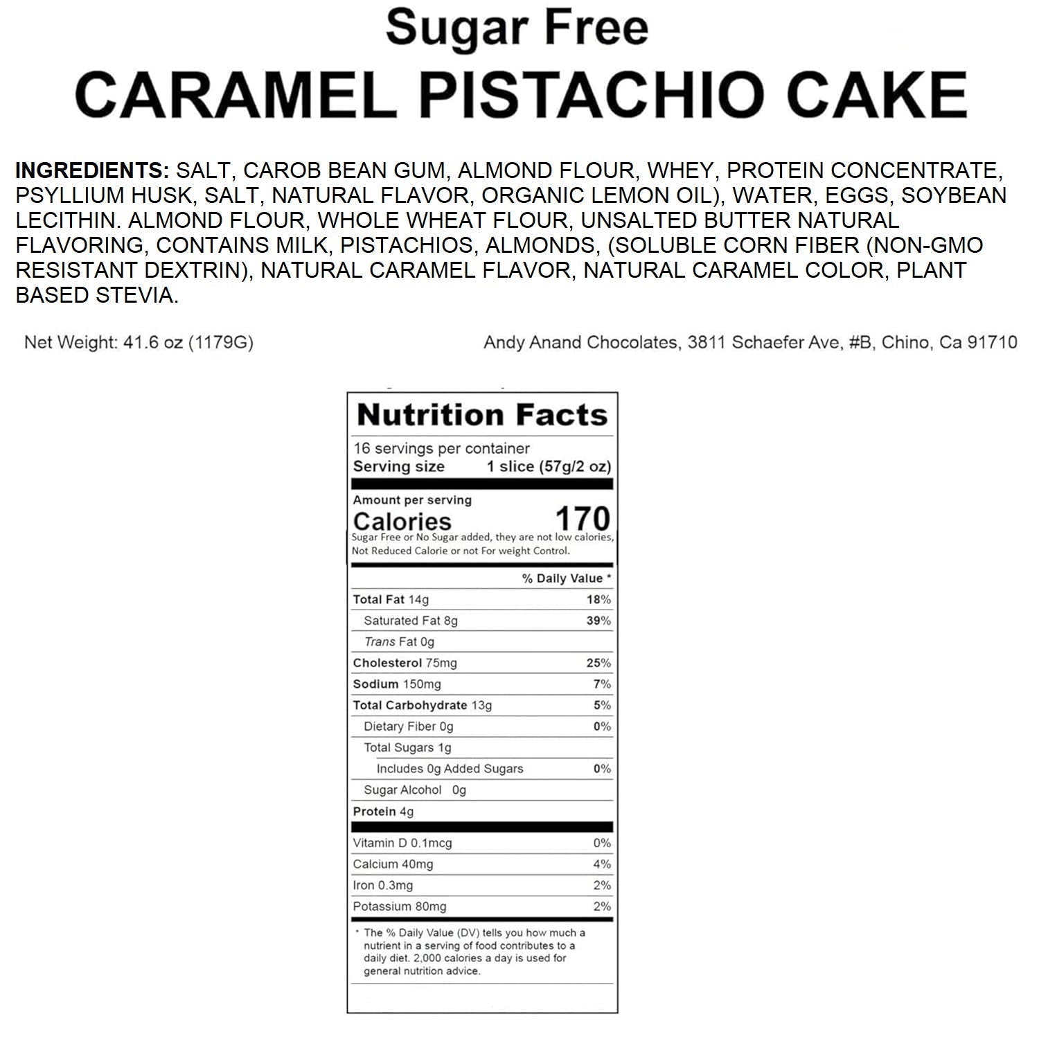 Andy Anand Deliciously Indulgent Sugar Free Caramel Pistachios Cake 9" - Experience the Richness - Amazing Decadent Cakes From Bakery (2.6 lbs)