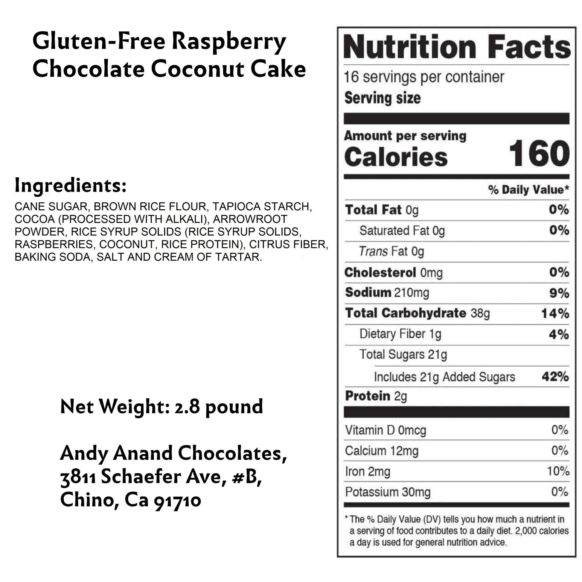 Andy Anand Exquisite 9" Gluten Free Raspberry Chocolate Truffle Coconut Cake 9" with Real Chocolate Truffles: Always Made in Small Batches with Fresh Ingredients - 2.8 lbs