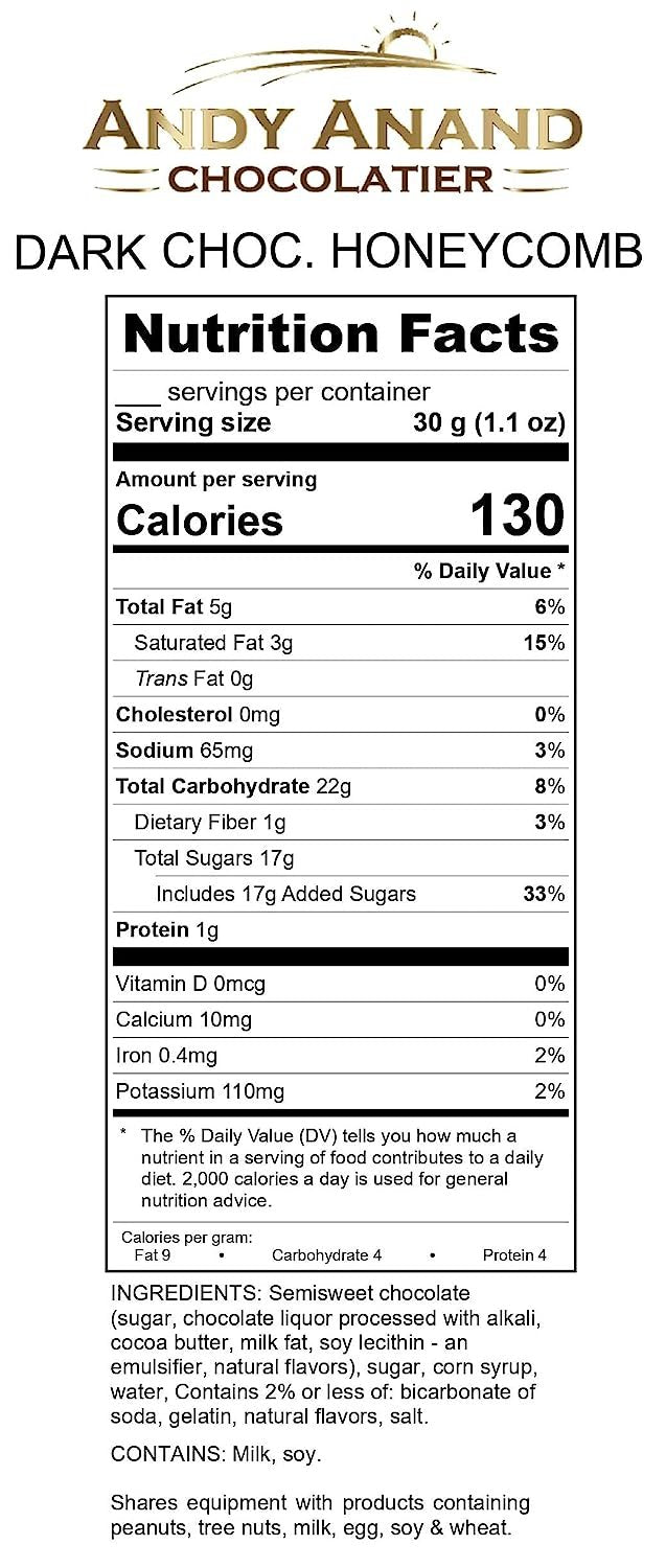 - True Artisan Honeycomb Dark Chocolate: Discover the unmatched quality of our Honeycomb Dark Chocolate, crafted with single-source chocolate and the freshest ingredients. Each piece is handmade with passion by master artisans, offering an authentic, non–mass-produced chocolate experience.