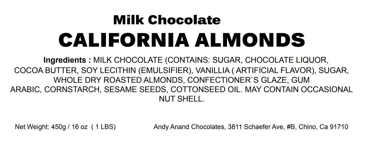 - California Almond Chocolate : Satisfaction guaranteed; email us with any product or delivery concerns.