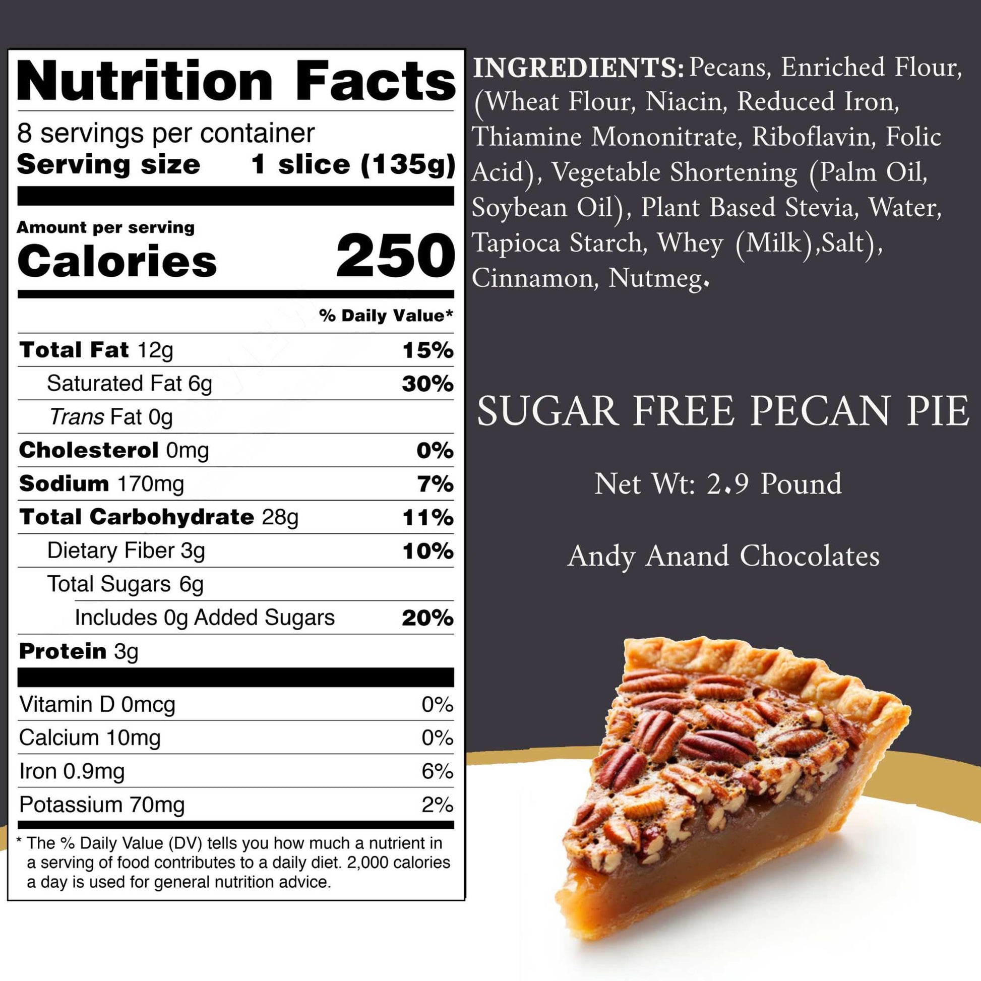 Andy Anand Sugar Free Dark Chocolate Pecan Pie Gourmet Dessert 2 lbs, Decadent, Delicious