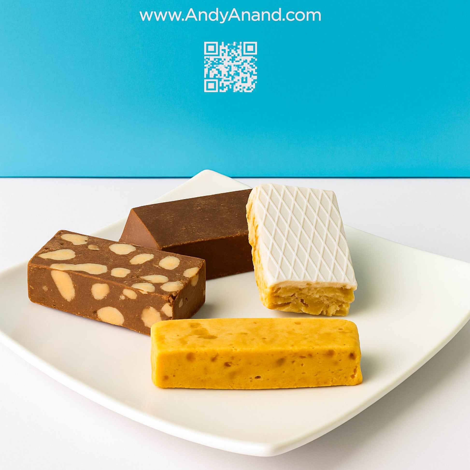 Andy Anand Sugar Free Nougat Assortment, Gluten Free - 4 Delicious Flavors of Soft Almond European Nougat with a Creamy Feel | Gluten Free, Creamy Texture - Gourmet Treat Made in Europe (8 Pcs 7 Oz)