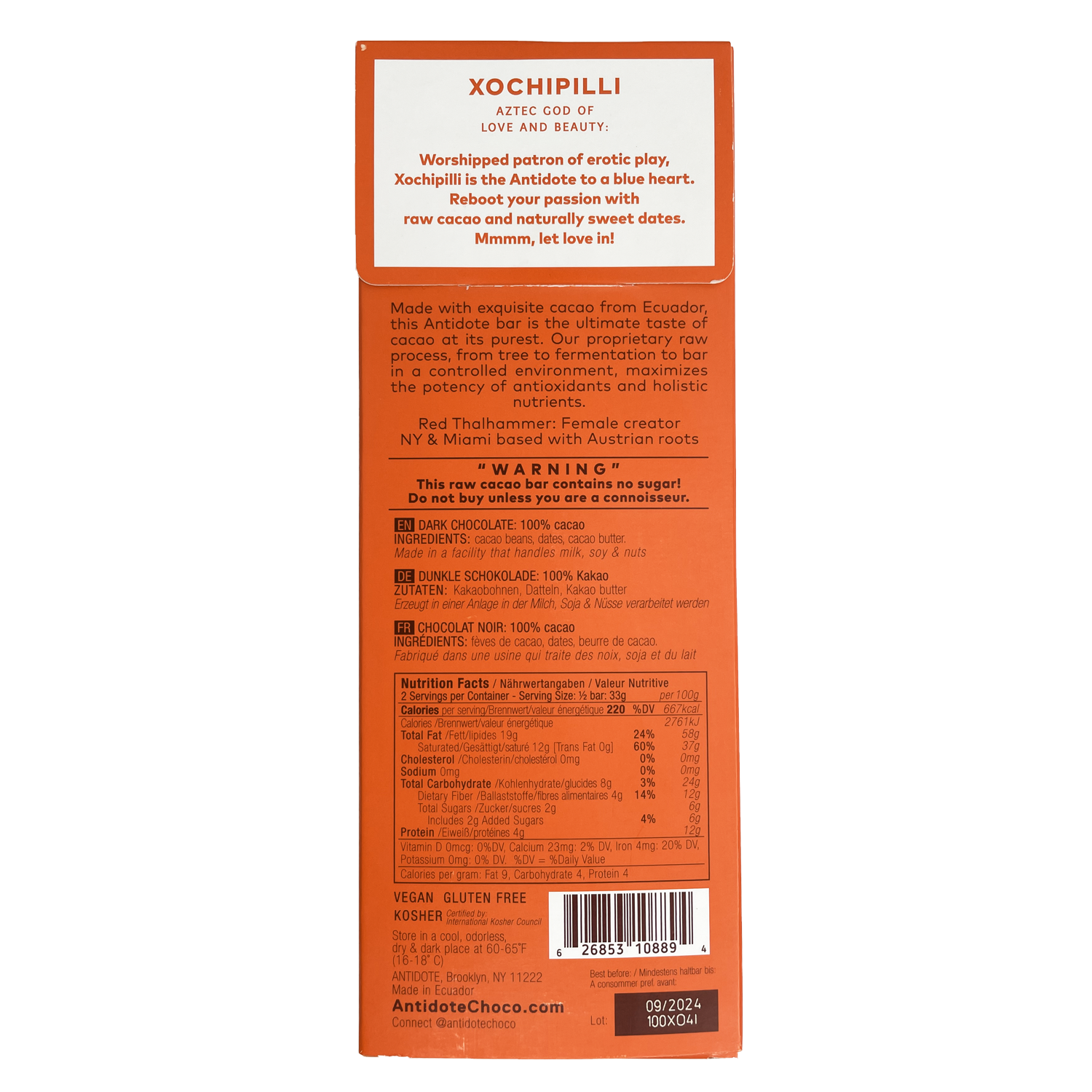 ANTIDOTE CHOCOLATE XOCHI: RAW 100% CACAO + DATES - 12 Bars