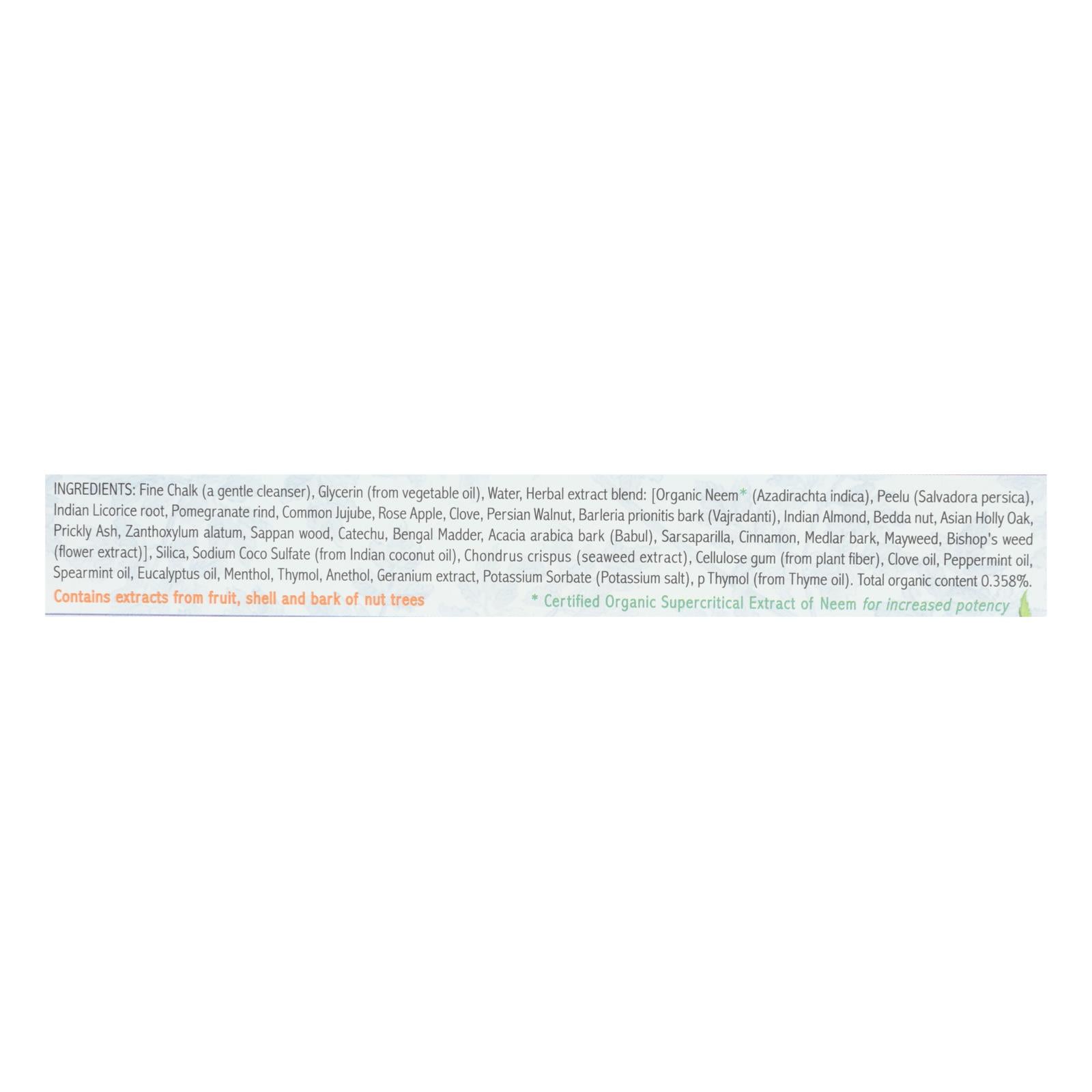 Discover the natural way to maintain oral health with this Ayurvedic herbal toothpaste, blending the unique properties of neem and licorice with a medley of 24 other esteemed botanicals. Crafted from centuries-old Ayurvedic wisdom, this fluoride-free and gluten-free formula is perfect for those seeking a thoroughly clean and fresh feel without harsh chemicals or artificial additives.