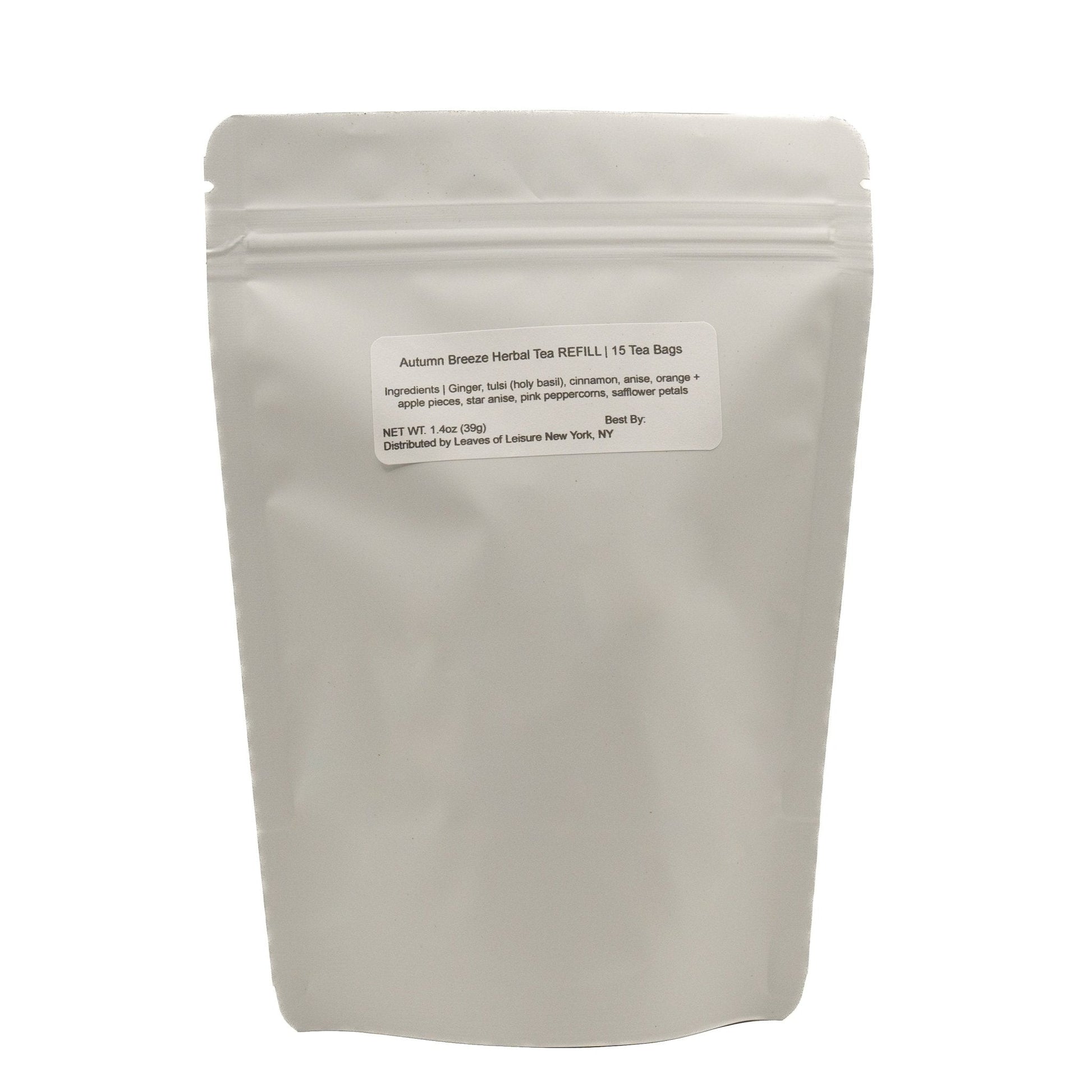 Start with our 100% recycled keepsake tea canister, or refill with our plain white eco-friendly standup pouch. Both include 15 tea bags. Mini size with 3 tea bags also available, perfect for travel, gifting and sampling .