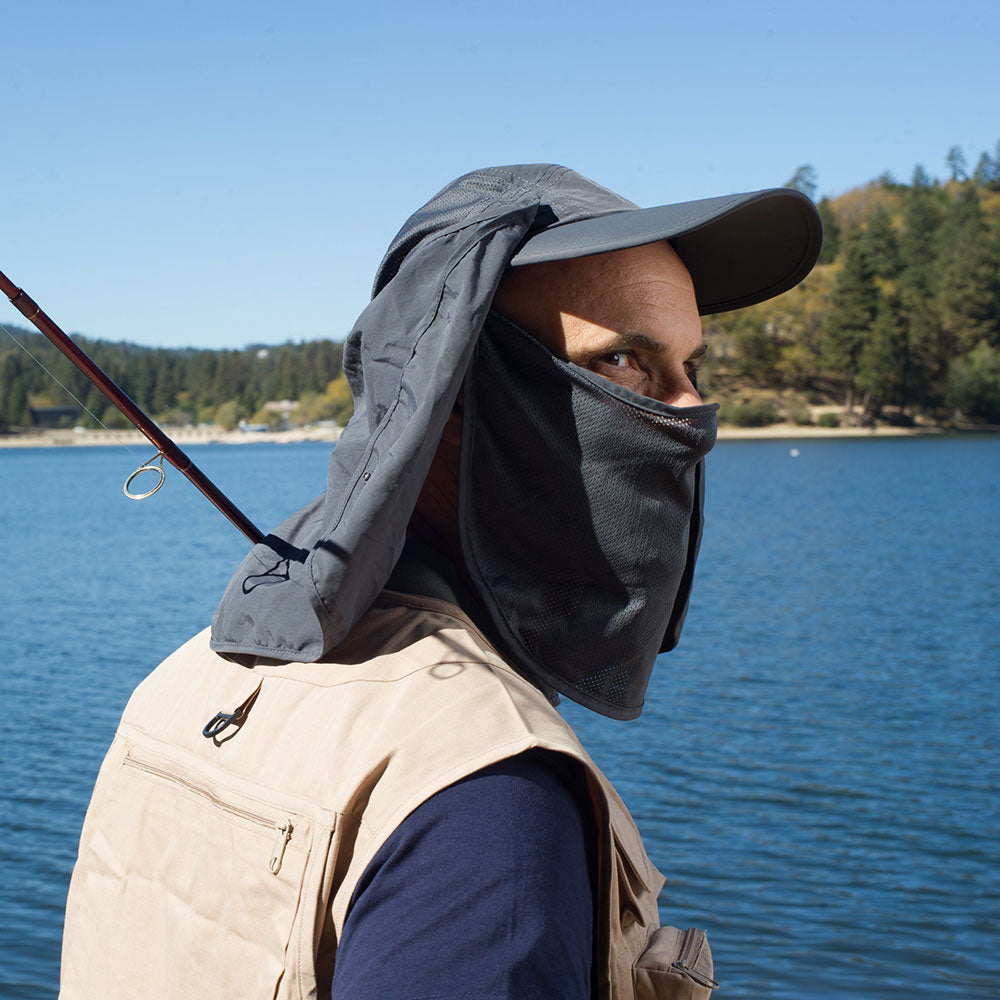 Backwoods Cap's mesh mask and detachable flap that clips in front afford all-around protection for the face and neck.