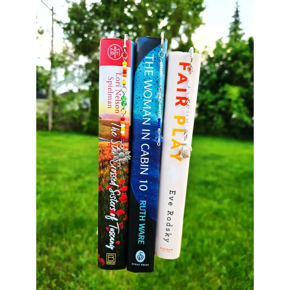 Elevate your reading experience with our exquisite set of handcrafted metal bookmarks, each adorned with unique beaded designs and charming pendants. Perfect for book lovers, these bookmarks combine functionality with artistic flair, making them a delightful addition to your literary collection or a thoughtful gift for a fellow bibliophile.