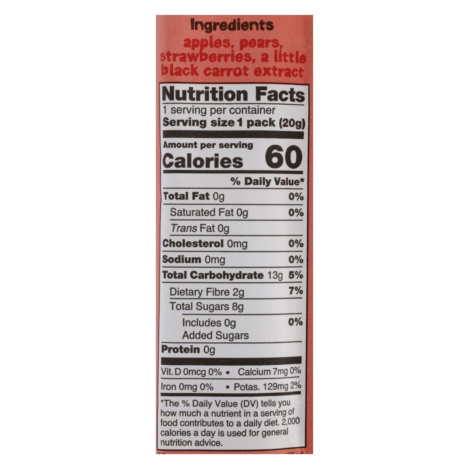 Delight in a naturally sweet treat with these fruity roll-ups made from real fruit ingredients. Perfect for all ages, each pack offers the goodness of apples, pears, strawberries, and black carrot extract, without any added sugar or artificial fillers. Enjoy the convenience of a healthy snack that's Non-GMO, vegan, kosher, and gluten-free, making it suitable for a wide range of dietary preferences.