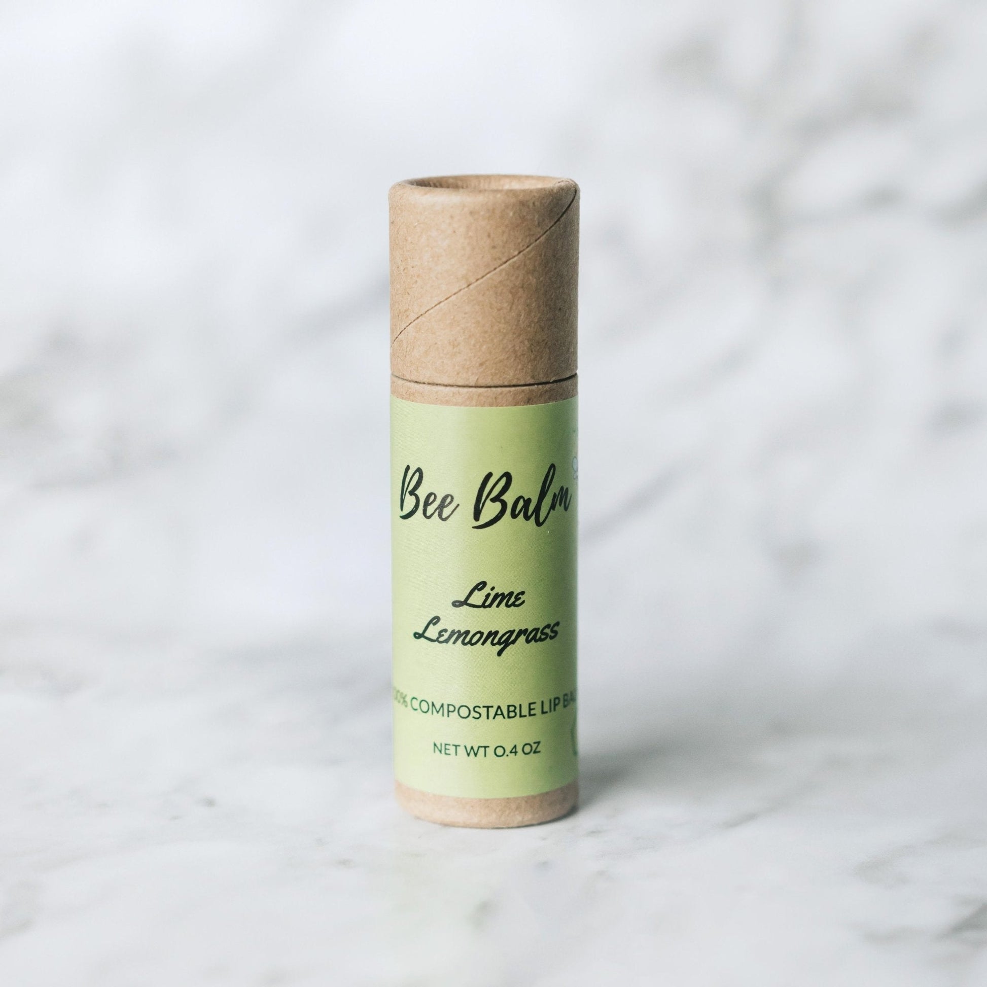 Bee Balm Lime Lemongrass Lip Balm Tube and label are both 100% compostable.
