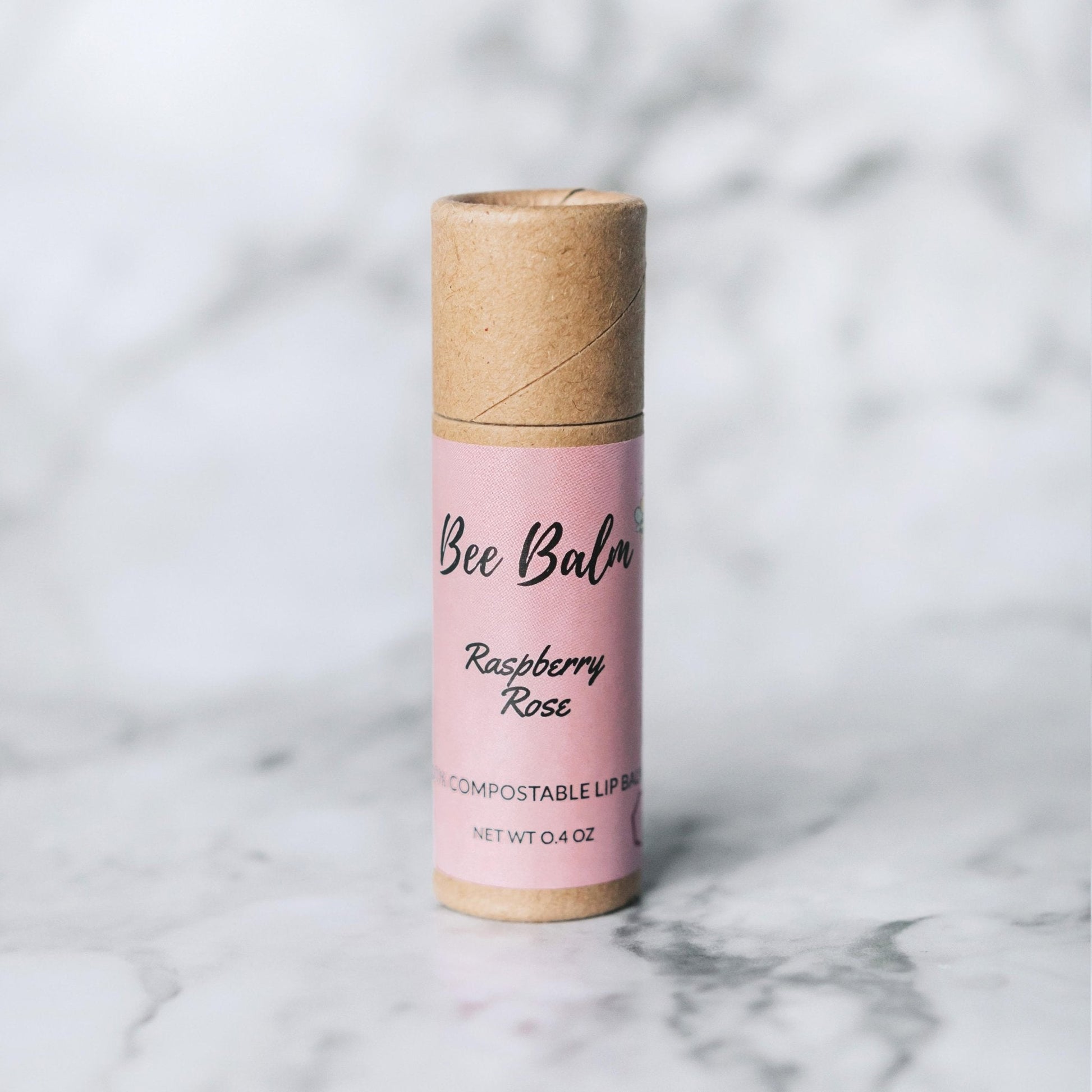 Bee Balm Raspberry Rose Lip Balm Tube and label are both 100% compostable.