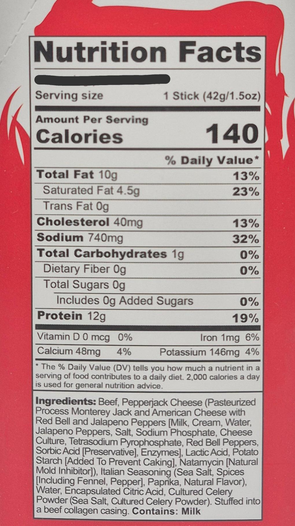 - High Protein Content: Each 1.5 oz stick contains approximately 12-15 grams of protein, making it an excellent protein source to support muscle health and keep you feeling full and satisfied
