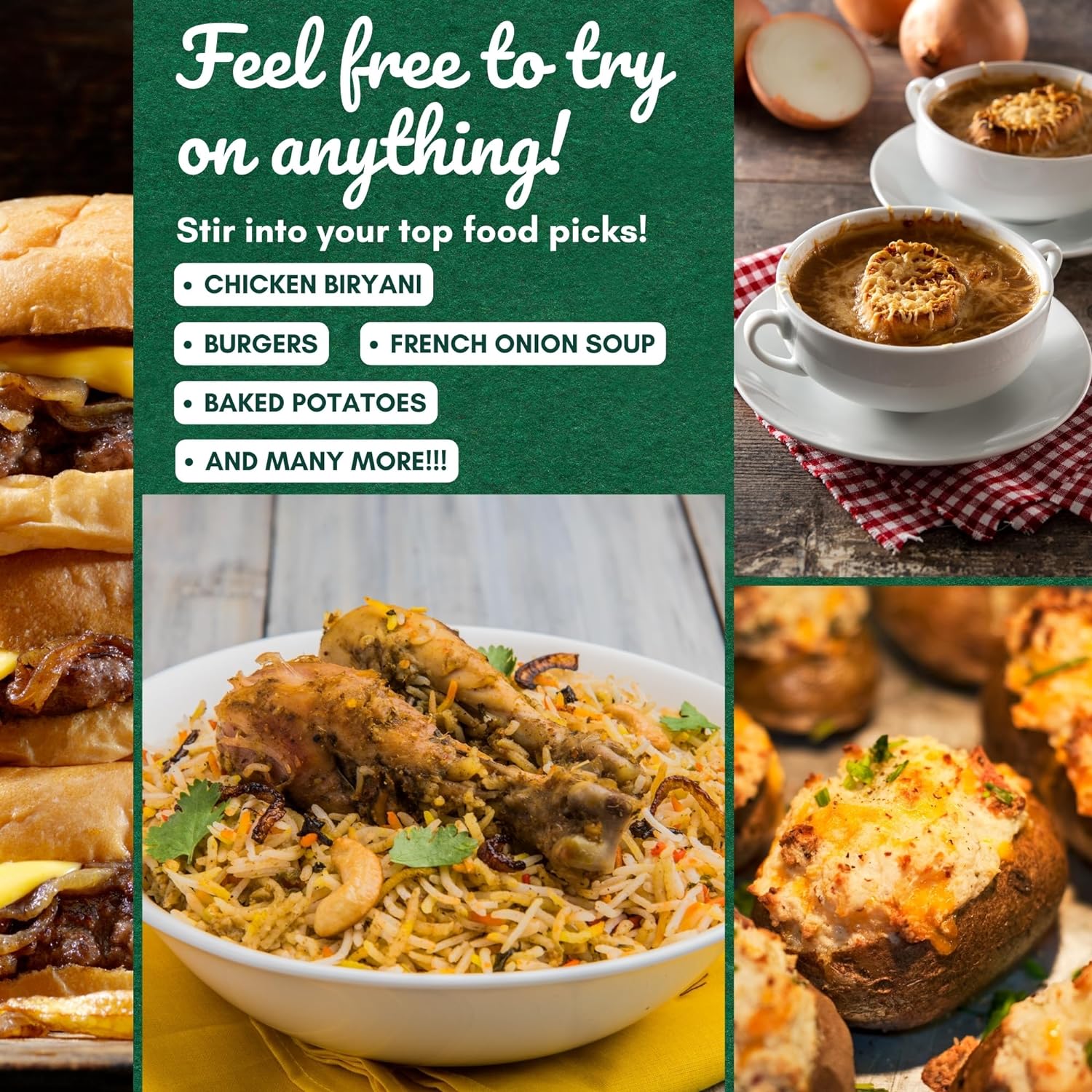 All-natural fried onions are made using real onions and natural oils ensuring that they contain no artificial flavors, colors, or additives