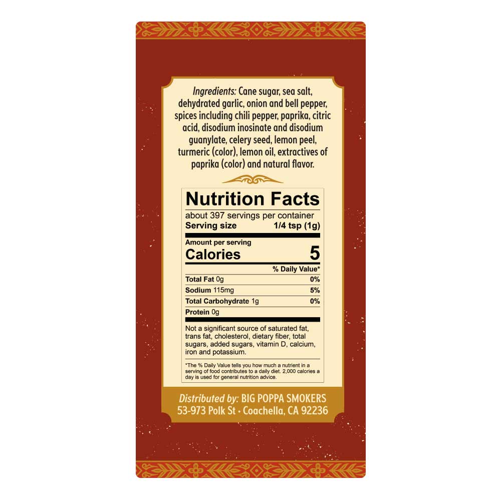 Crafted for flavor supremacy, this gluten-free and MSG-free seasoning is a staple in both competitive BBQ circles and home kitchens. Big Poppa's Money Seasoning is packaged in a convenient 14oz shaker, ensuring you always have a generous supply of this essential BBQ rub on hand.