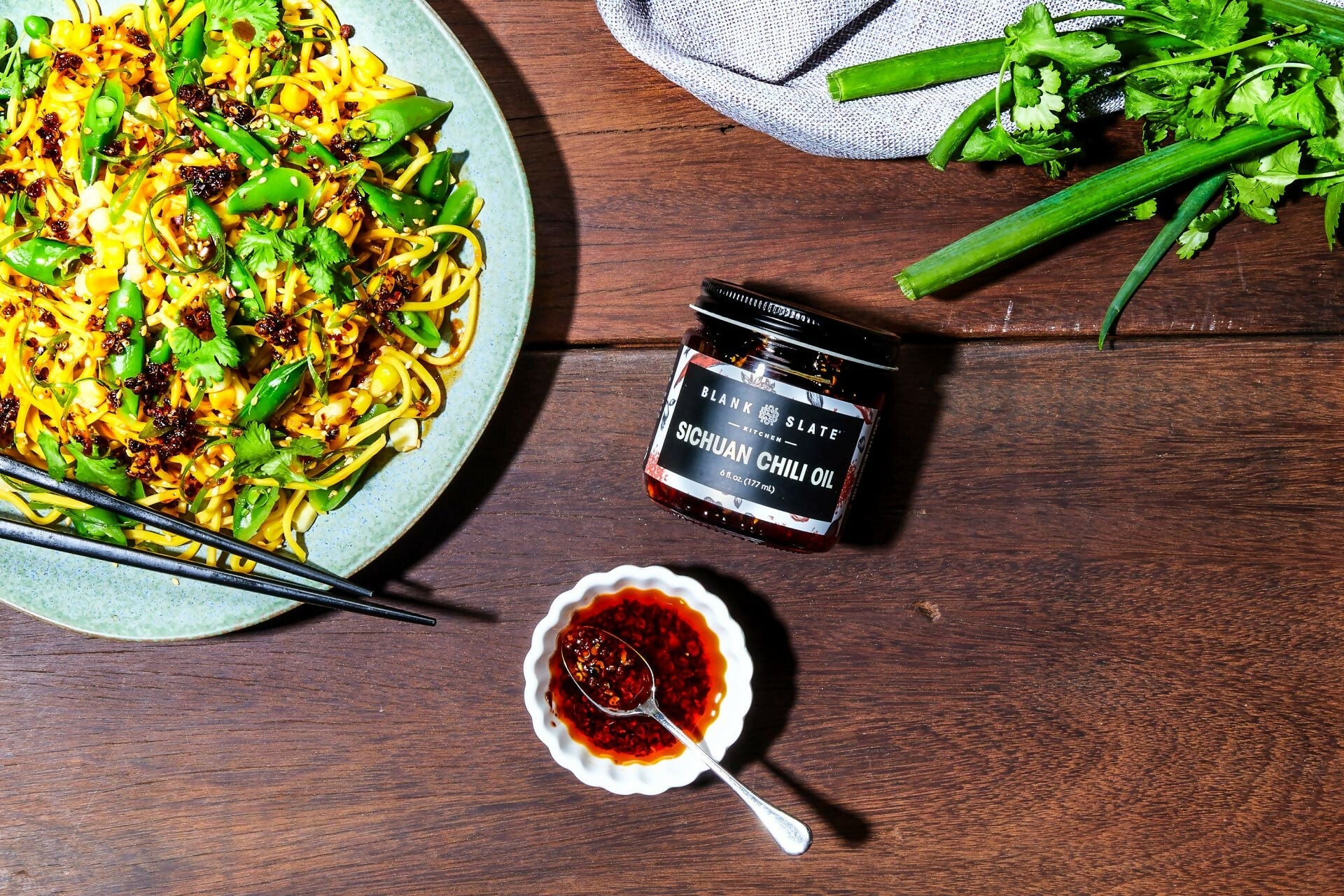 Blank Slate Chili Oil, the first and only clean label authentic Szechuan oil highlighting the unique mala flavor, is infused with a dozen spices and aromatics, two types of chilis and freshly ground Sichuan peppercorns, creating layers and layers of flavor, not just heat.