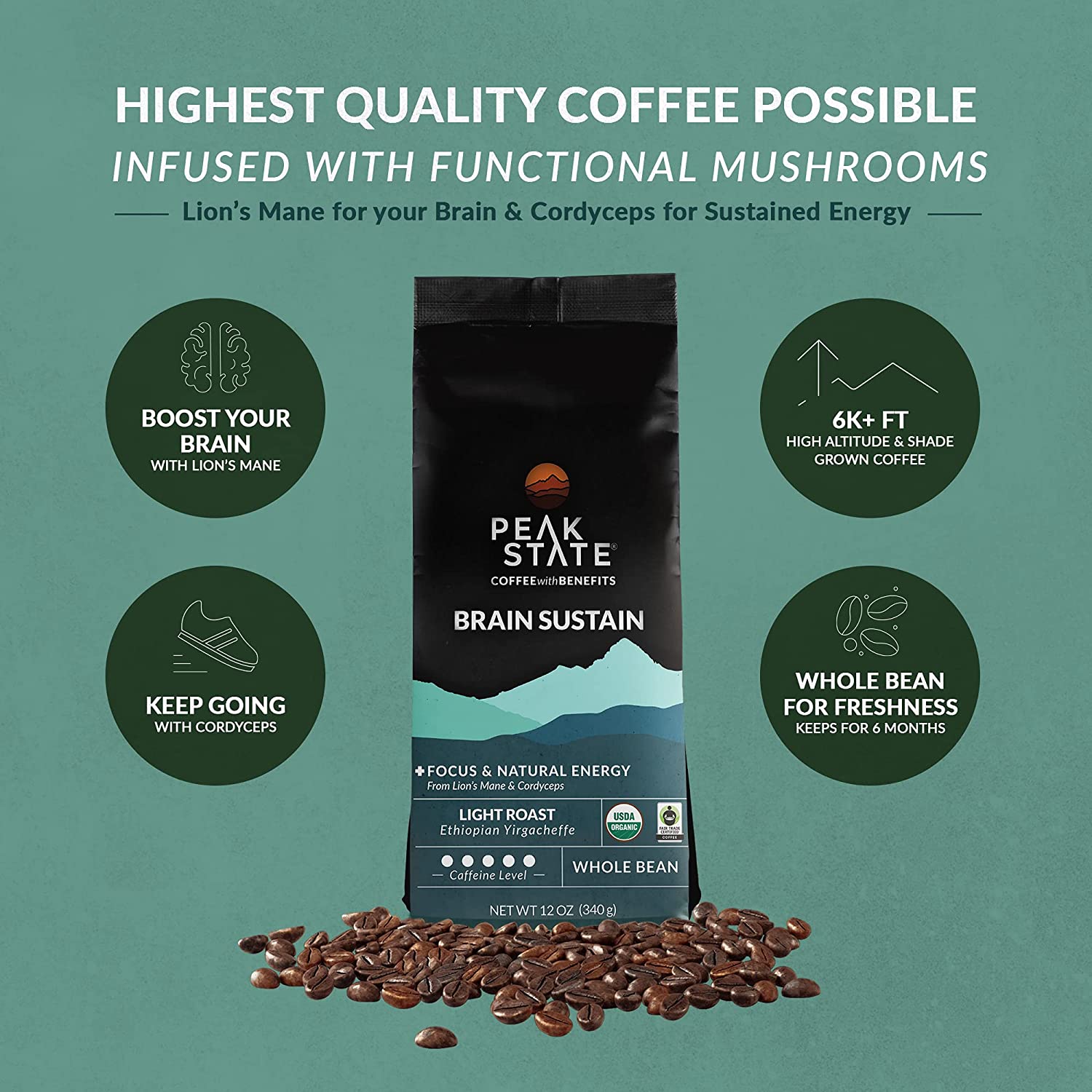 BRAIN SUSTAIN Light Roast - 5 Pound Bag