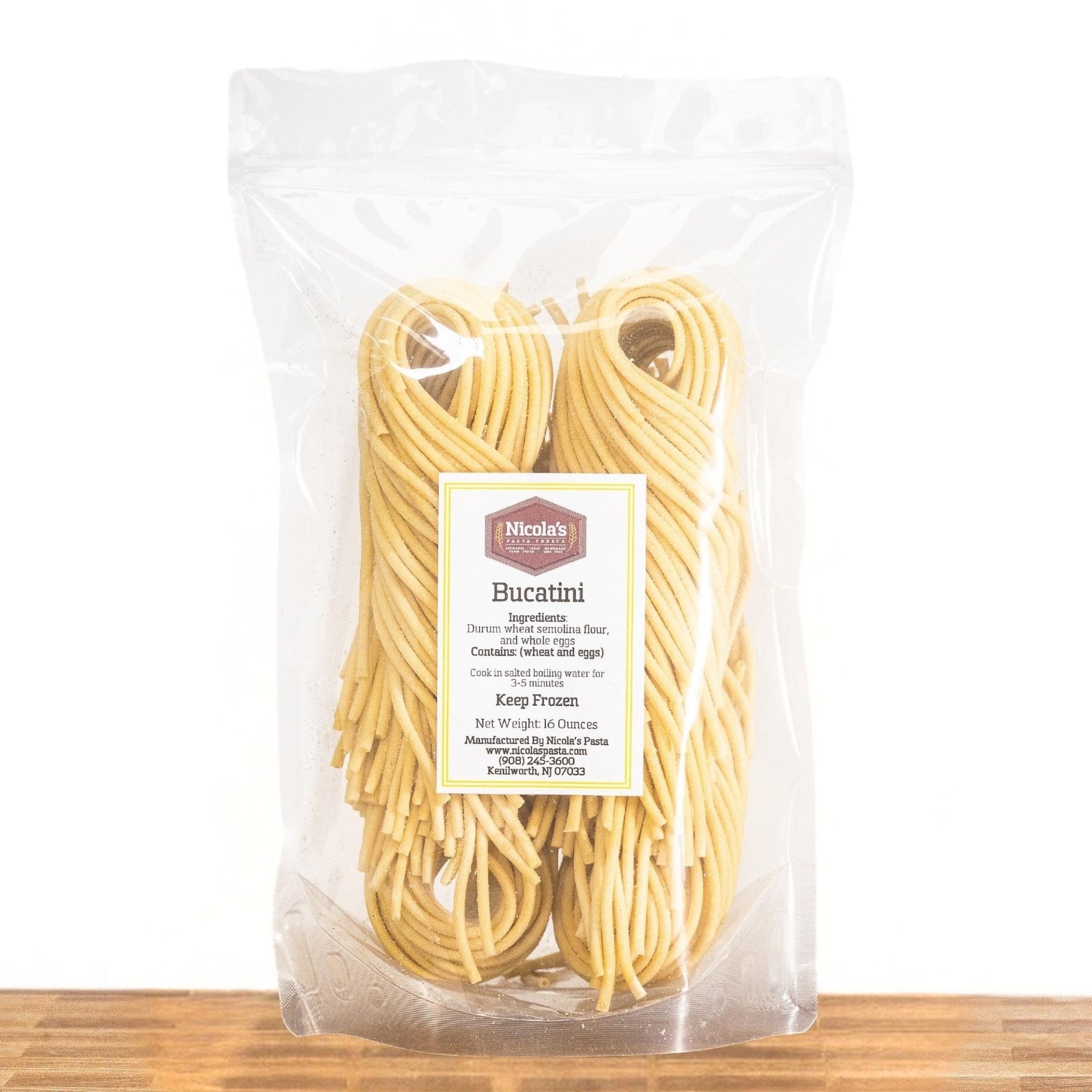 ##0##Satisfy your cravings for classic Italian food with our freshly made Bucatini Pasta. Made from scratch with premium ingredients sourced directly from Local Farmers and organic unbleached semolina flour imported directly from Italy. It’s made fresh to order and flash frozen to preserve freshness, without any preservatives. Perfect for any meal. Bucatini is a traditional long pasta enjoyed by everyone including those who are lactose-intolerant.