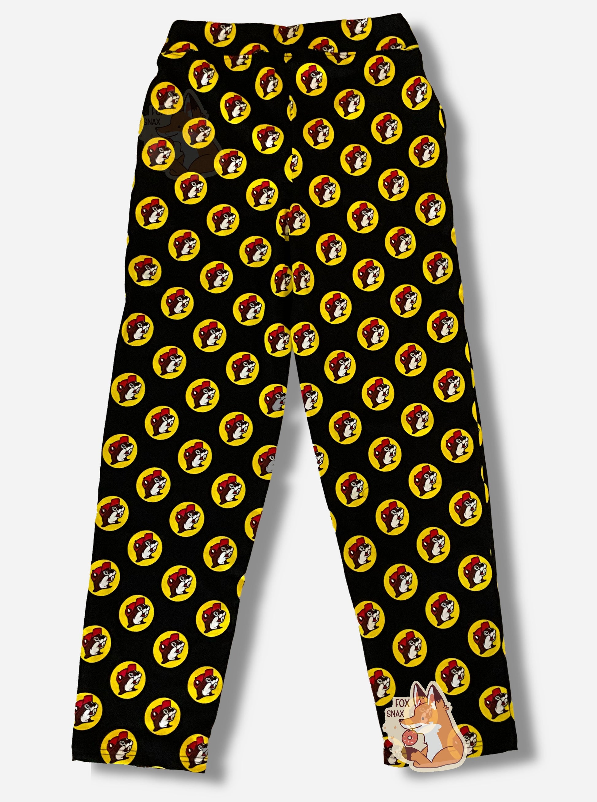 Get cozy in Buc-ee's Black Pajama Pants, covered in the iconic beaver logo and designed for ultimate comfort. Featuring a soft drawstring waist for the perfect fit, these stylish pants are perfect for lounging in style.