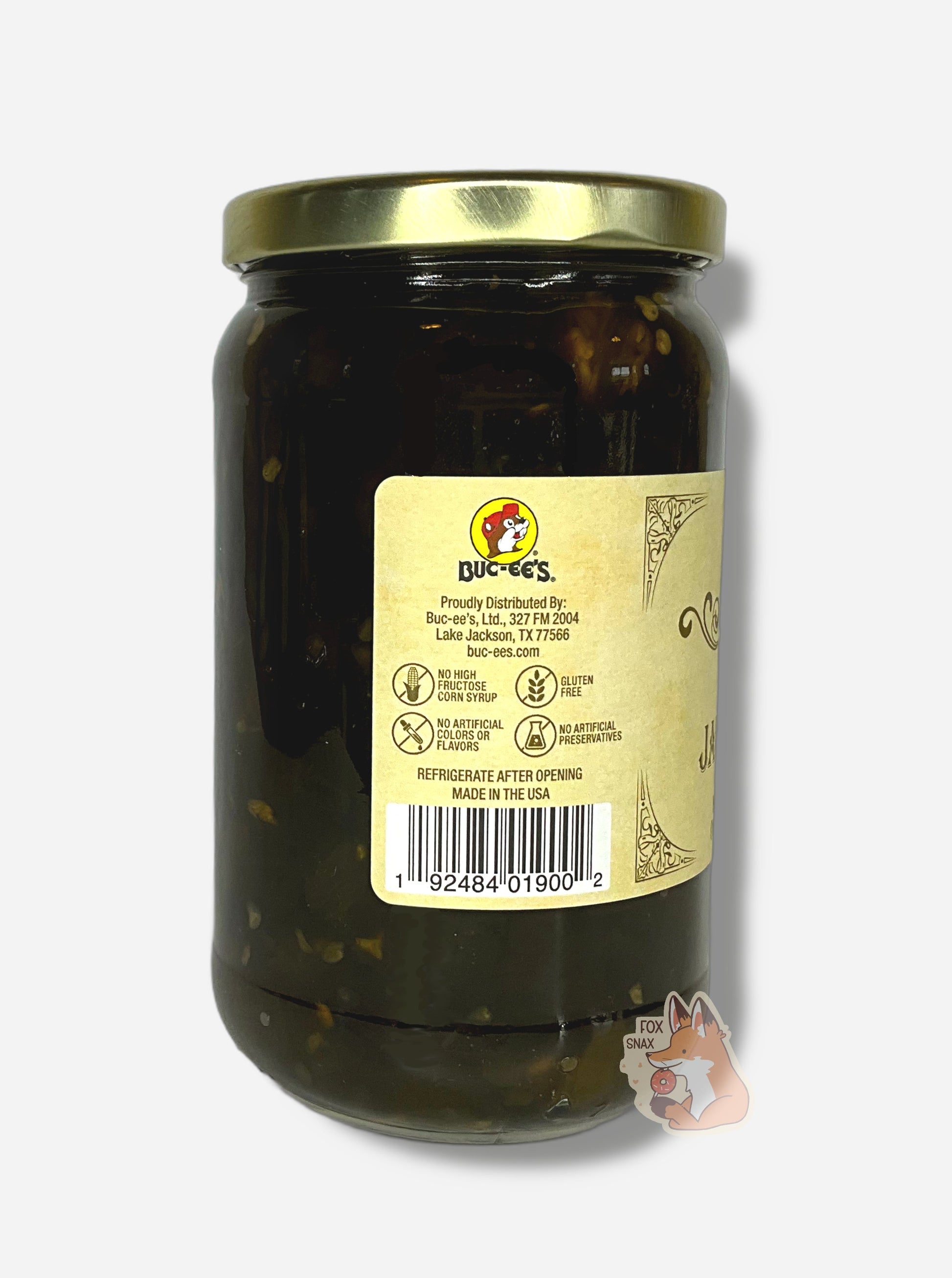 Buc-ee's Candied Jalapeños deliver a fiery sweetness that will ignite your taste buds. Made in the USA with no high fructose corn syrup, gluten, artificial colors, flavors, or preservatives, these 20 oz glass jars are perfect for a treat!  Packed with love and care (it is a glass jar after all!) from Fox Snax - grab yours today and spice up your life!