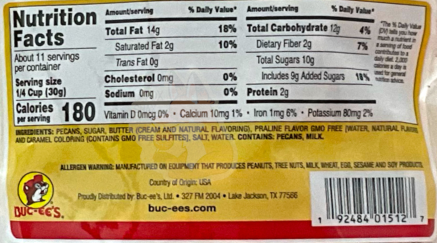 Buc-ee's Praline Pecans deliver a sweet taste of the South! Premium pecans coated in rich, buttery praline glaze offer the perfect crunch. Irresistible, shareable, and oh-so-satisfying—Southern charm in every bite!