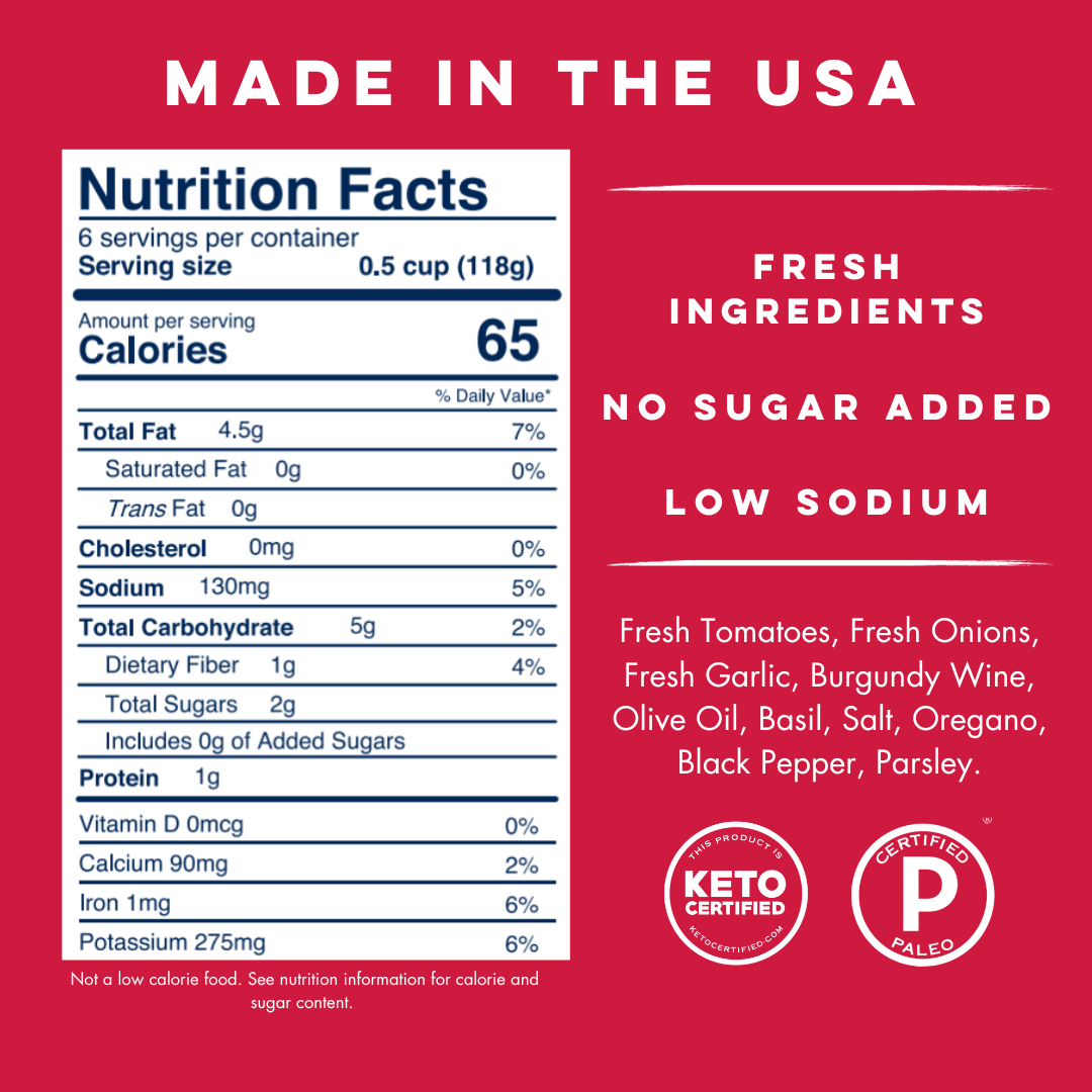 Experience the exquisite depth of flavor with Yo Mama’s Burgundy Wine Tomato Sauce. Crafted with the finest burgundy wine, ripe tomatoes, and a blend of aromatic herbs, each jar offers a symphony of rich, velvety taste. Elevate your pasta dishes, braised meats, or even drizzle over roasted vegetables for a gourmet touch. Indulge in the luxurious essence of this sauce, and let your culinary creations reach new heights of deliciousness!