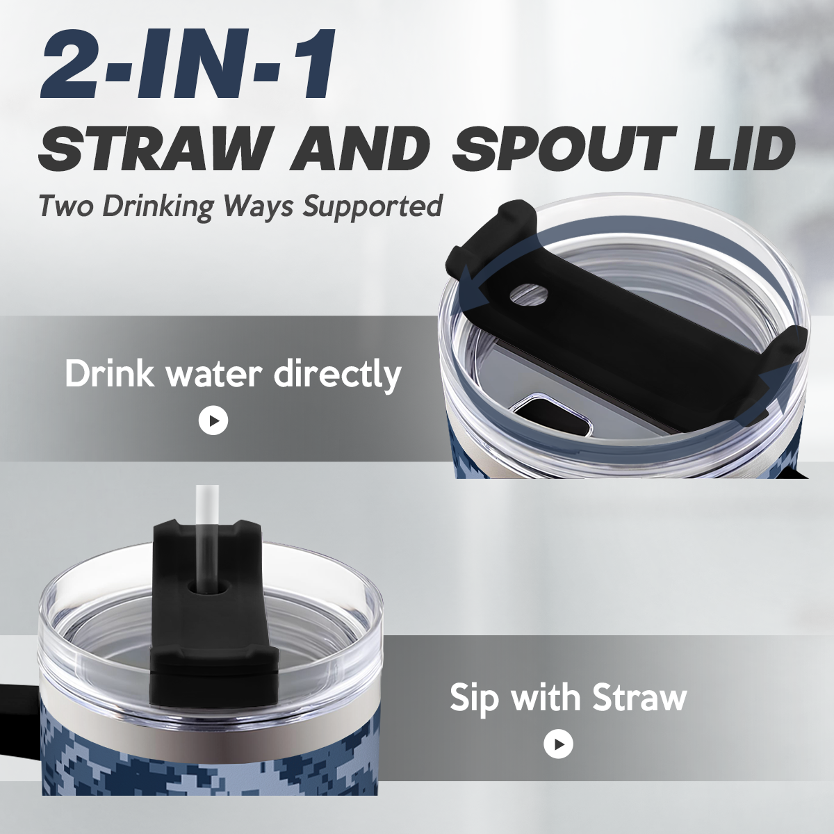 Camouflage Tumbler 40oz Stainless Steel Insulated with Lid & Straw, Camo Travel Mug Cup Gifts for Men Dad Husband Brother Grandpa Veteran Hunting Lover on Christmas Birthday Valentine Fathers Day