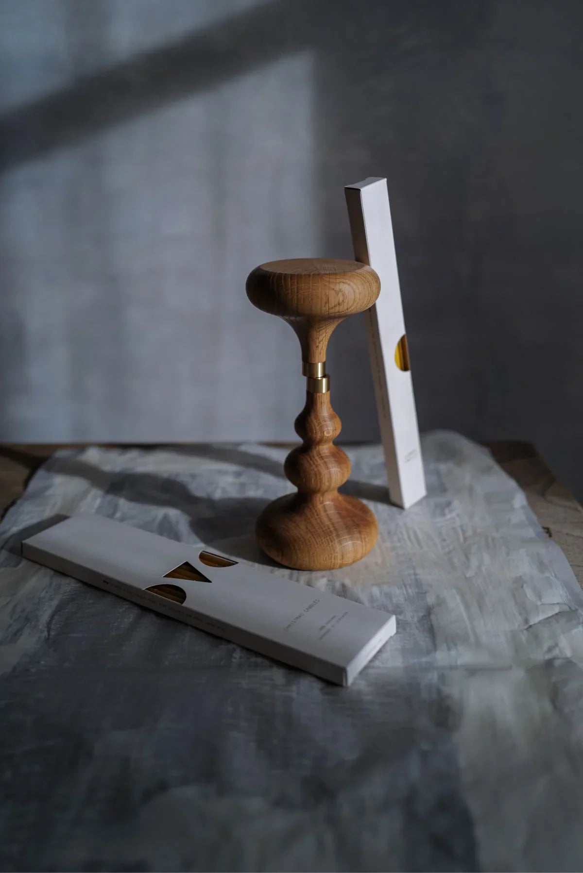 The set includes two oak candle holders and two packages of beeswax candles, in total four of our favourite products - Oak Candle Holder, Tree Candle Holder, Slim Candles and Dinner Candles. The holders have a signature detail - the brass socket - that fits candles of both 1 cm and 0,5 cm diameters (any candles from our range except Classic Beeswax Candles). Candles are handmade by local workshop using 100% beeswax and cotton wicks. The candle holders are wood turned from oak in a carpentry workshop in Lithuania.