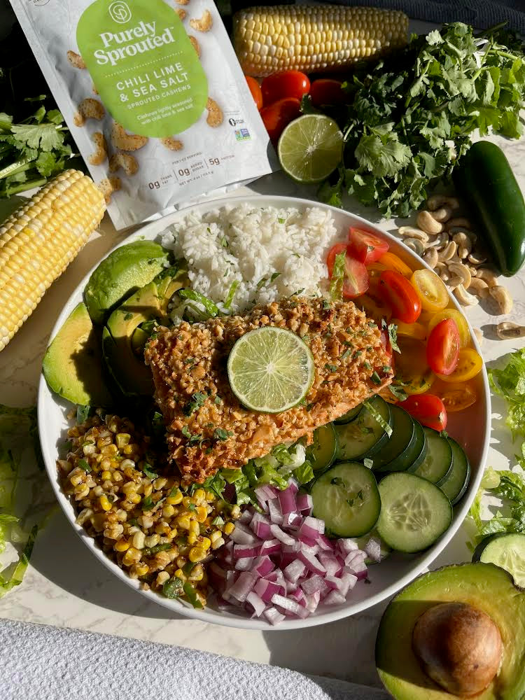 Purely Sprouted Chili Lime Sprouted Cashews are the ultimate crave-worthy snack—tangy, zesty, and just the right amount of heat. These Non-GMO Verified sprouted cashews are seasoned with real chili and lime for a bold flavor punch that’s balanced and satisfying. Sprouted for improved digestibility and nutrient availability, each bite delivers higher fiber, higher protein, and low sugar with clean ingredients you can feel good about. Whether you're fueling up post-workout or reaching for a flavorful snack mid-day, Purely Sprouted Chili Lime Sprouted Cashews bring the heat and the health in every handful.