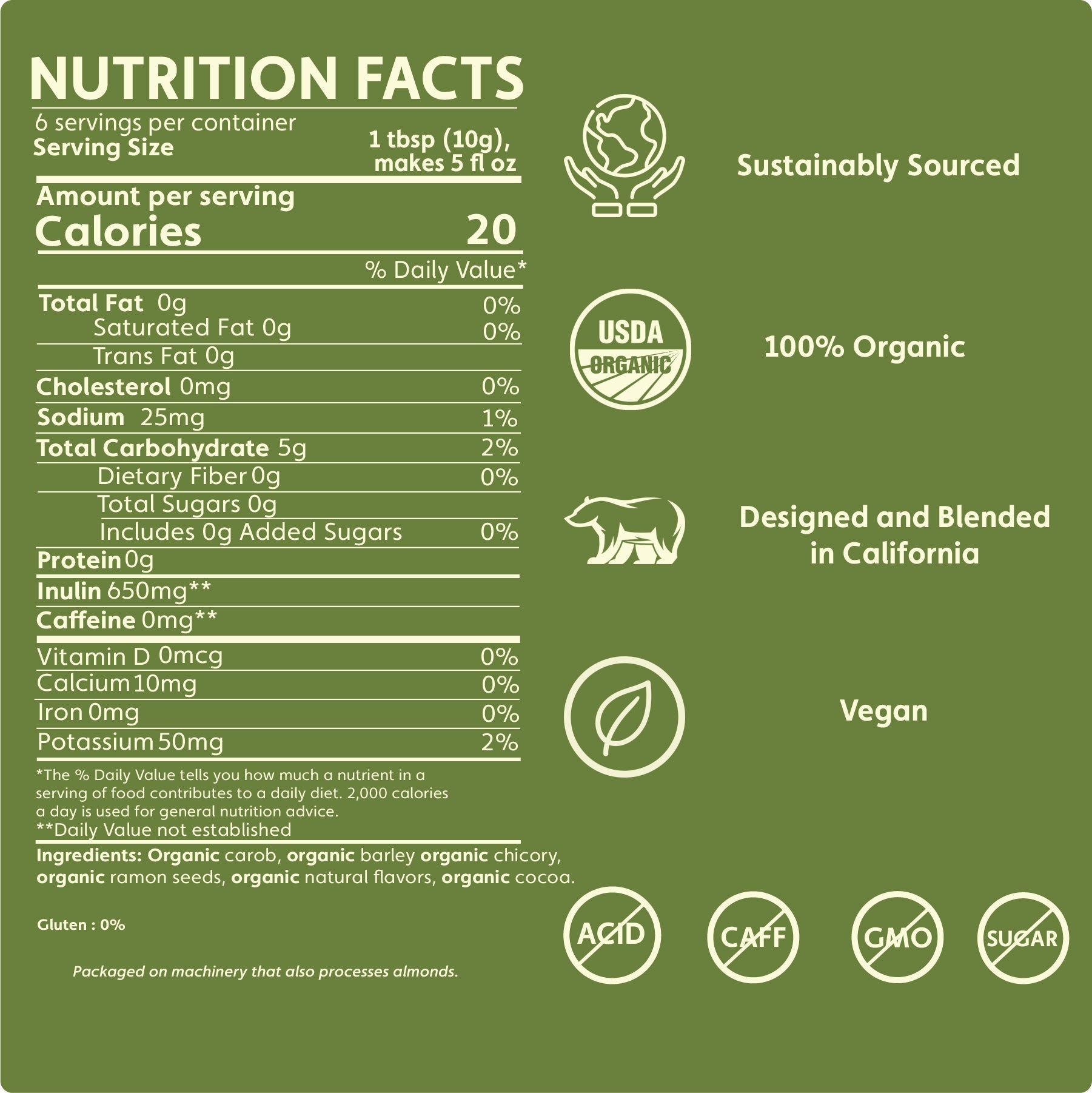 Fresh, juicy raspberry sparkles from the depths of pools of chocolate with coffee notes from dark roasted ramón seeds and chicory roots.