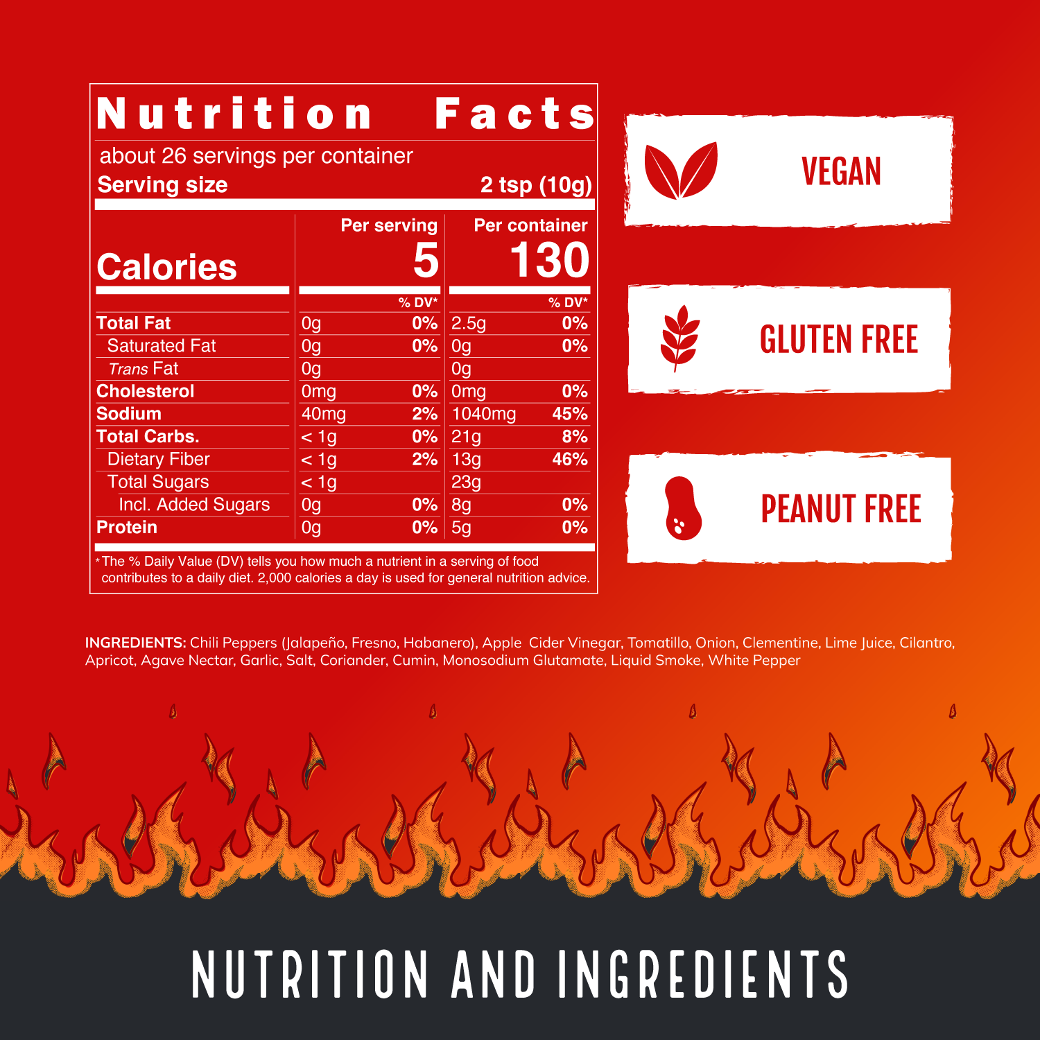 Cinco is a tomatillo pepper sauce infused with bright citrus, bold Latin spices, and a smoky touch. The pleasant, welcoming heat rushes to meet you, inviting you in for another bite, again and again, until the jar is empty. This unique take on a salsa verde brings juicy clementines to the party and pairs perfectly with nachos, tacos of all types, scrambled eggs, white chicken chili, seafood, and so much more! 5/10 heat.