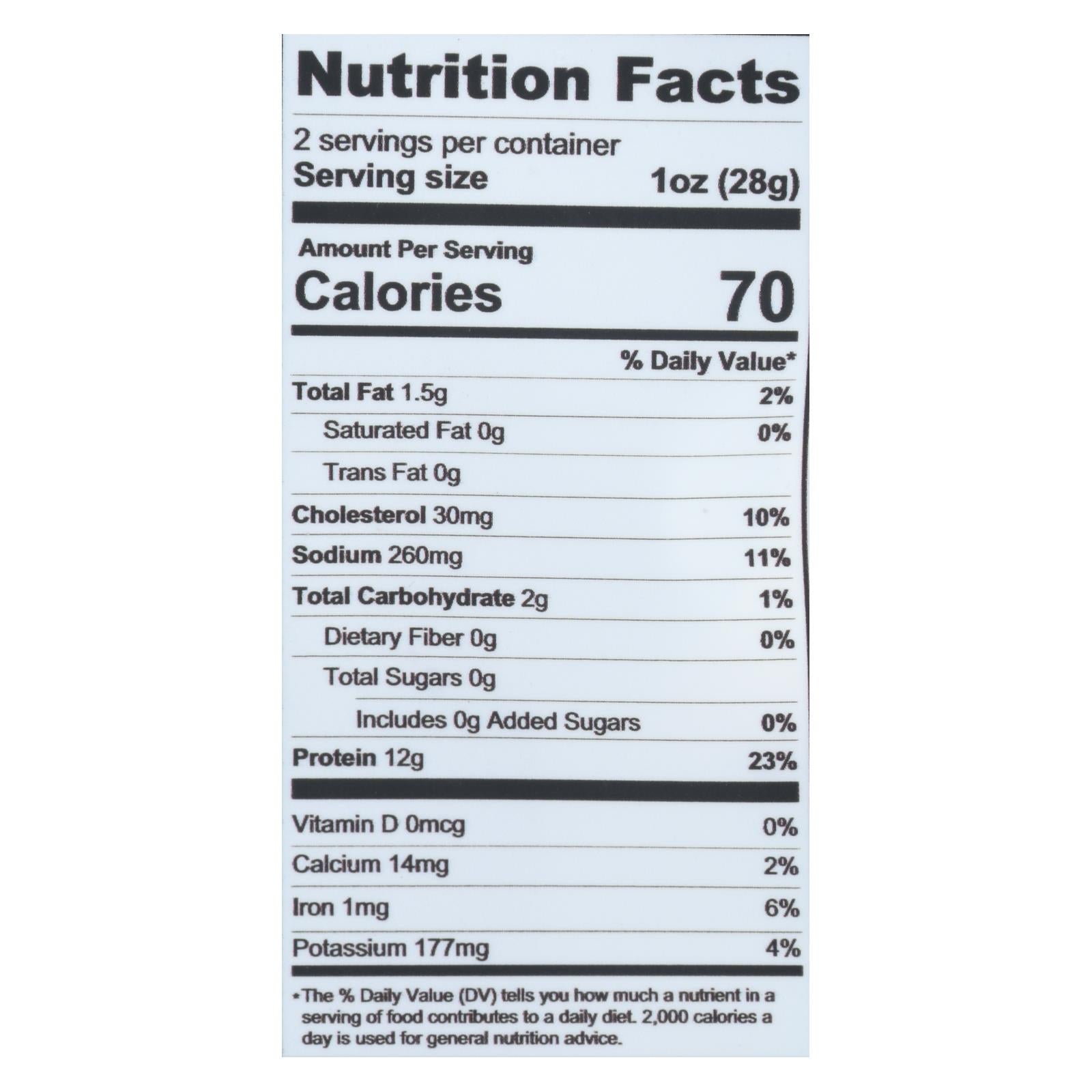 Savor the robust flavors of this mouthwatering beef jerky, crafted with care in California. Made from 100% grass-fed beef and free from gluten, this delectable snack is perfect for those who prioritize health without compromising on taste. Each 2 oz pack is brimming with savory goodness, conveniently packed in a case of 12 for long-lasting enjoyment.
