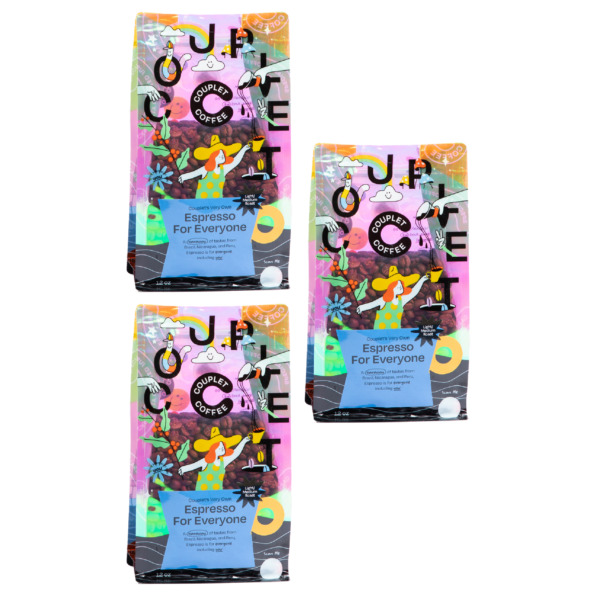 Couplet Coffee Everyone Favorite Espresso Blend Trio by Couplet Coffee wholesale product delivery near me | | Fulfilled by our friends at Couplet CoffeeBulk buyers and coffee gifters, this one is for you! The Espresso for Everyone : a modern, crowd-pleaser type of bean. It a mix of our Brazilian, Nicaraguan, and Peruvian beans.Great in any preparation but we kept espresso extraction in mind for these beans in particular. We recommend trying it as drip as well! Roasted fresh guaranteed. Try this in our cow print moka pot!
