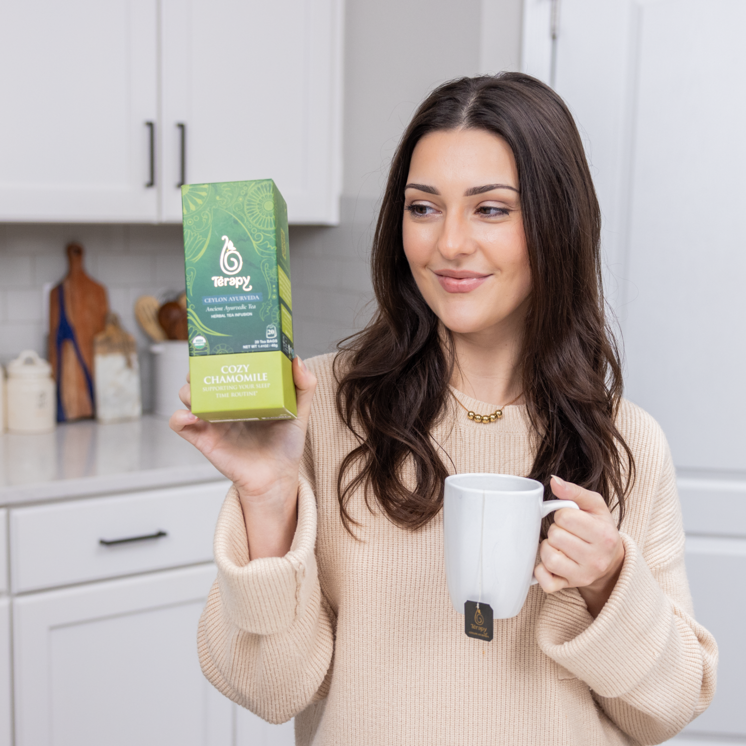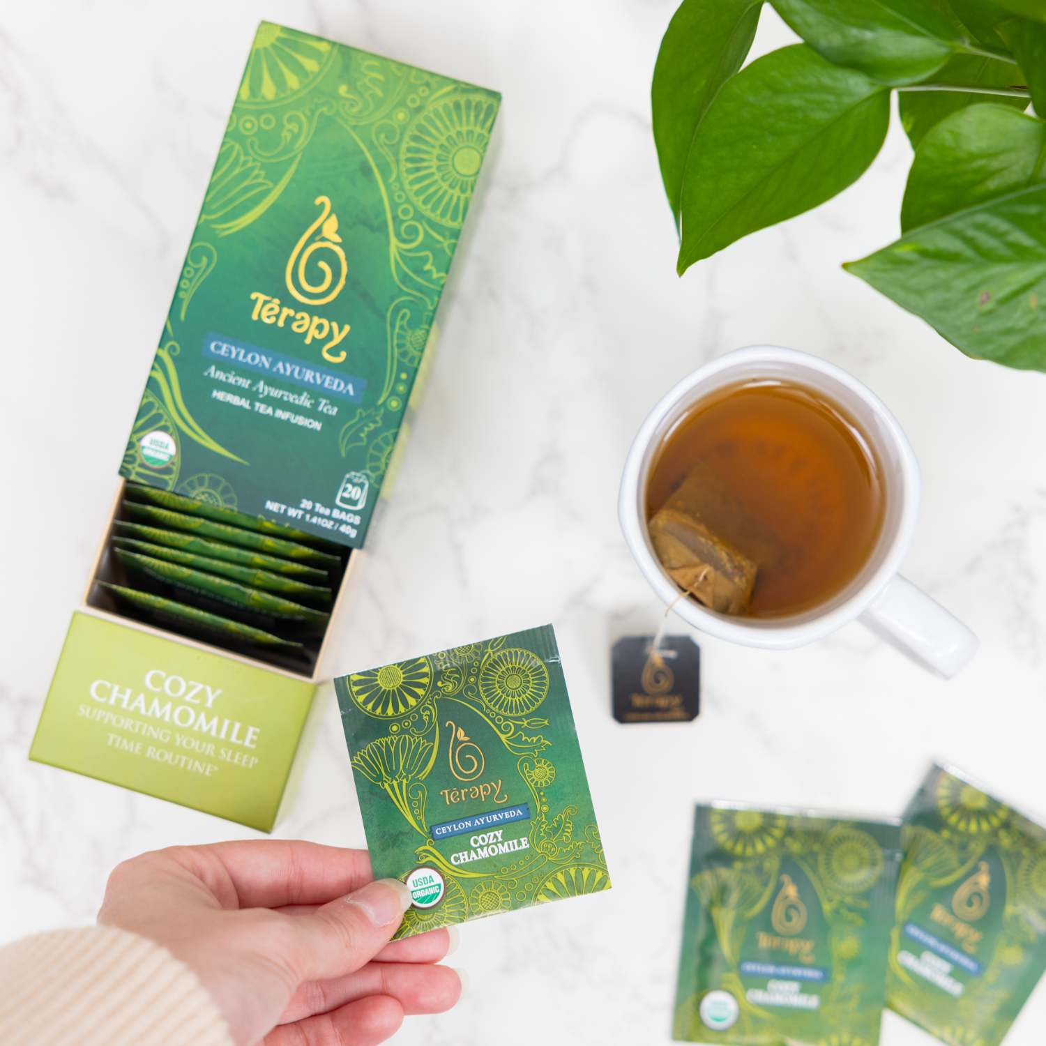 Terapy Teas is an artisanal wellness tea brand that blends premium Pure Ceylon tea with Ayurvedic botanicals, all 100% natural with no artificial colorings, flavors, or preservatives.