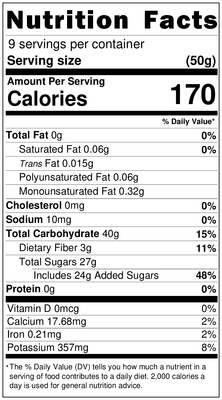 Allergen Statement: Product packed in a facility that also handles nuts, peanuts, soy, sesame, and wheat. 1 lb and 5 lb sizes only.