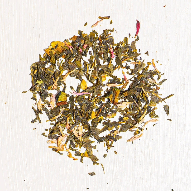 A wonderfully refashioning spring iced tea sure to please everyone. A great mild green tea with plush watermelon notes and a crisp cucumber finish.