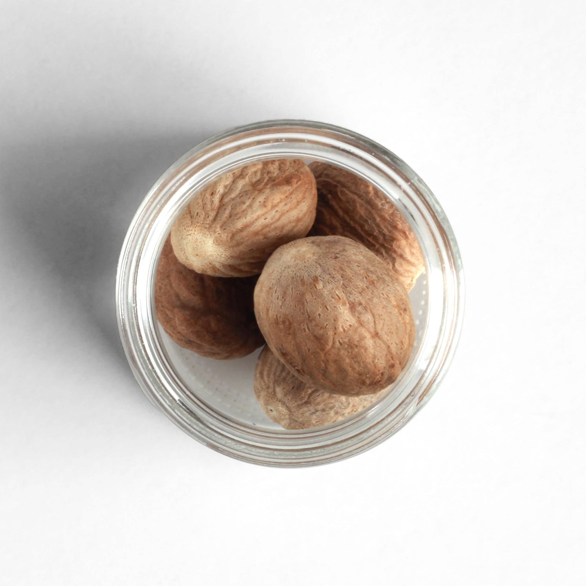 Curio Sri Lankan Whole Nutmeg We directly source these delightful nutmegs directly from Sri Lanka, and love to grate them into both sweet and savory dishes. Nutty and peppery, nutmeg is wonderful for enhancing buttery, fatty flavors, and there is nothing like freshly grated nutmeg in mashed potatoes, french toast, or cream sauces..