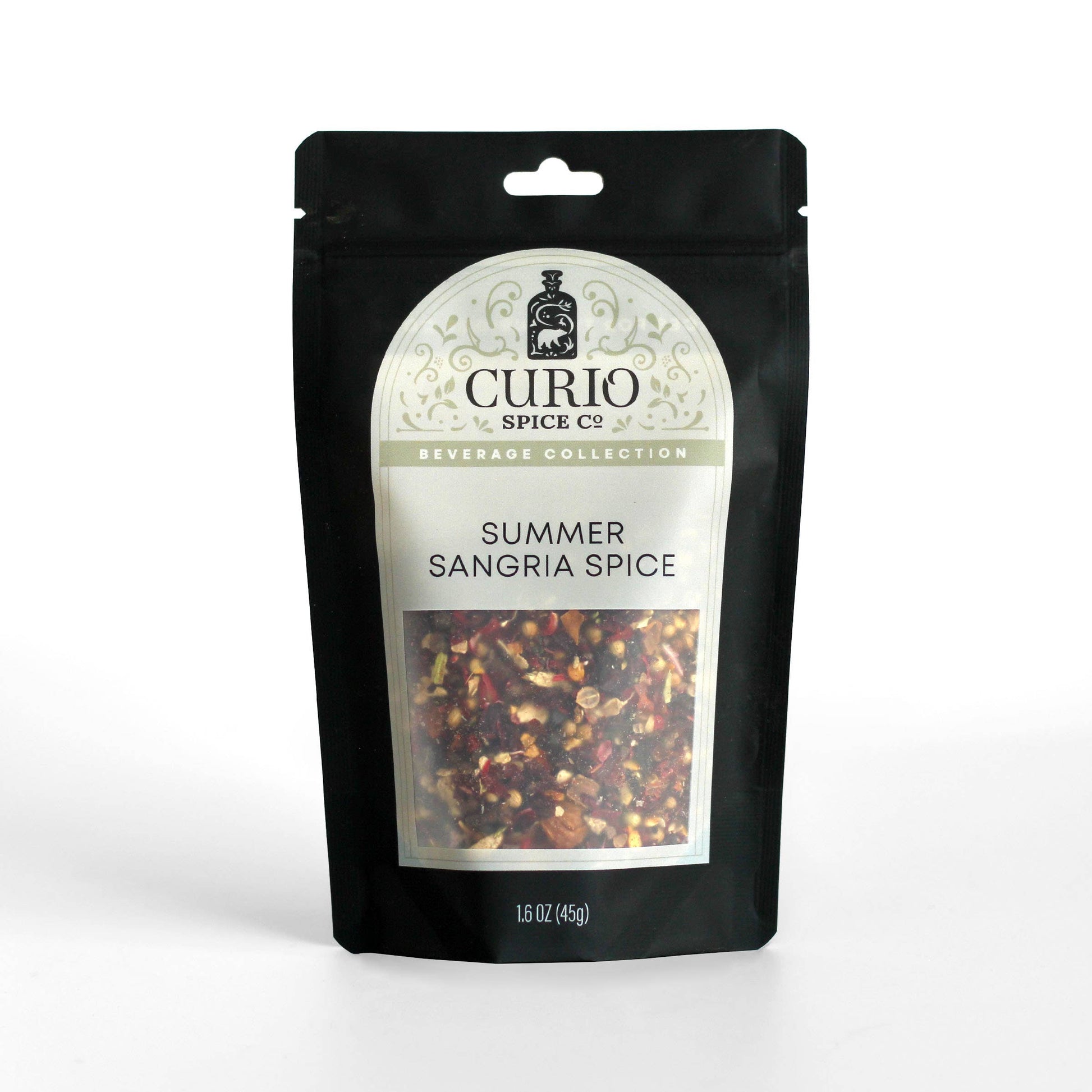 Curio Summer Sangria Spice A lightly spicy twist on a perennial Summer favorite, we love this sangria mix for backyard cookouts, relaxed Summer evenings, and everything in between. Citrus and tart balance perfectly with warming spices, all rounded out with a touch of heat to make this an instant classic! Instructions included.