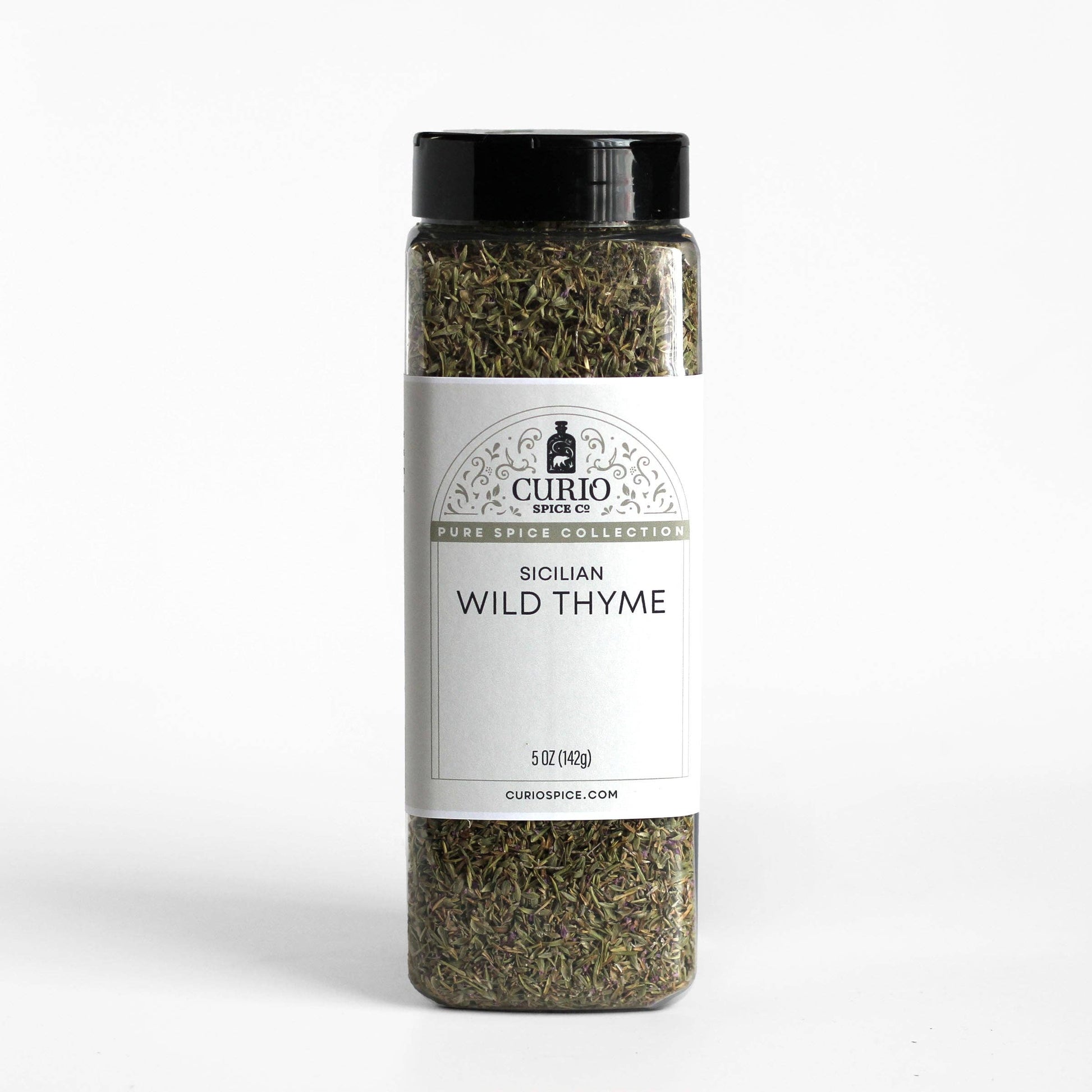 Curio Thyme, Sicilian Bulk Jar (5 oz) Grown on a small family farm in Sicily, this thyme is fragrant and bursting with flavor. A member of the mint family and closely related to oregano, thyme has an ancient pedigree going all the way back to the Ancient Egyptians. Sweet, herbal, and with a hint of mint and oregano, we love this in soups, roasted veggies, and pan sauces.
