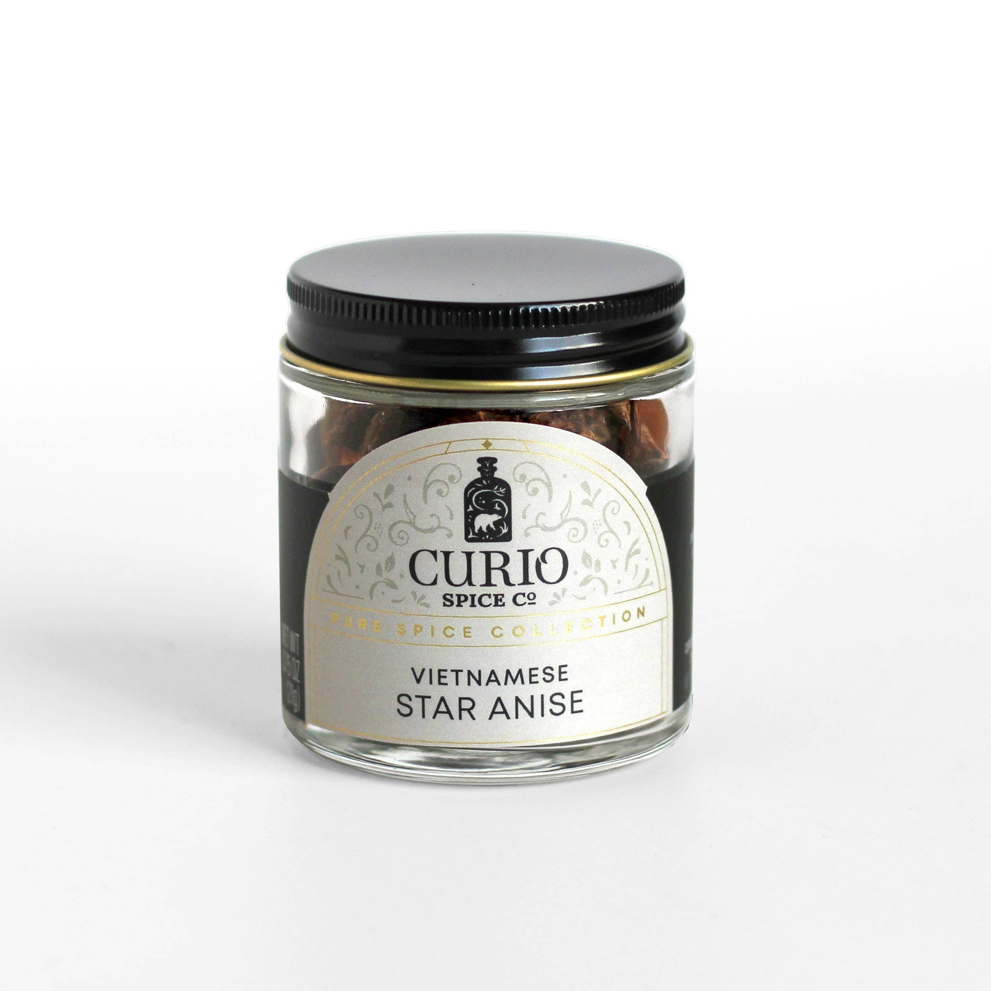 Curio Vietnamese Star Anise With its beguiling anise aroma and sweet flavor, star anise is used throughout East and South Asia in a wide variety of dishes. While it is probably most famously used in Chinese Five Spice blends and Vietnamese phở, it is also commonly found in biryani, masala chai, and in French mulled wine, to name just a few! Wonderful in both savory and sweet foods, star anise will enhance the flavor of meat, or add smooth sweetness to pastries and jams.