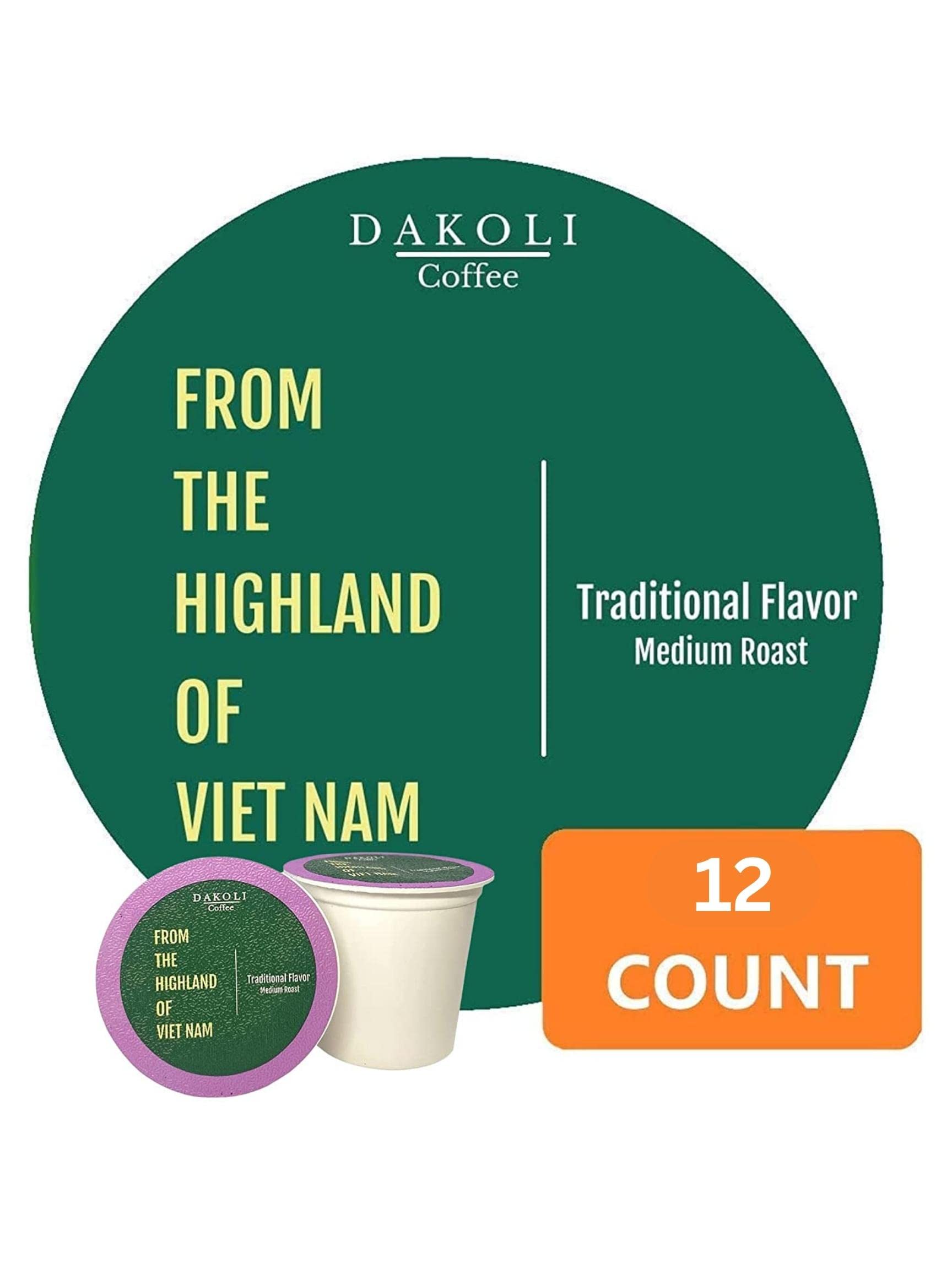Dakoli Vietnamese Coffee - (12 Count) Single Serve Vietnamese Coffee Capsule, Strong and Bold, Medium Roast, Traditional Ground Coffee