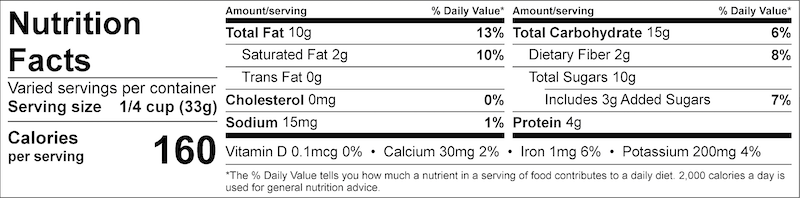 Contains: Almonds, Walnuts, Peanuts, and Soy.