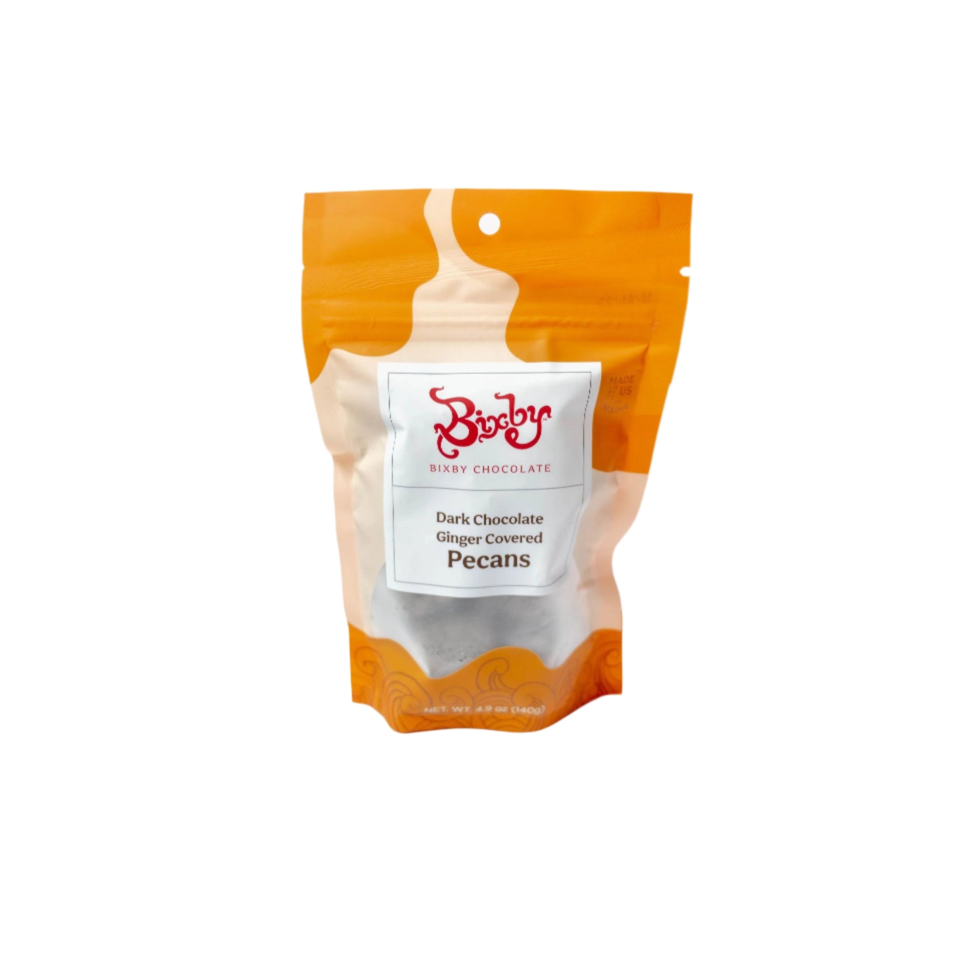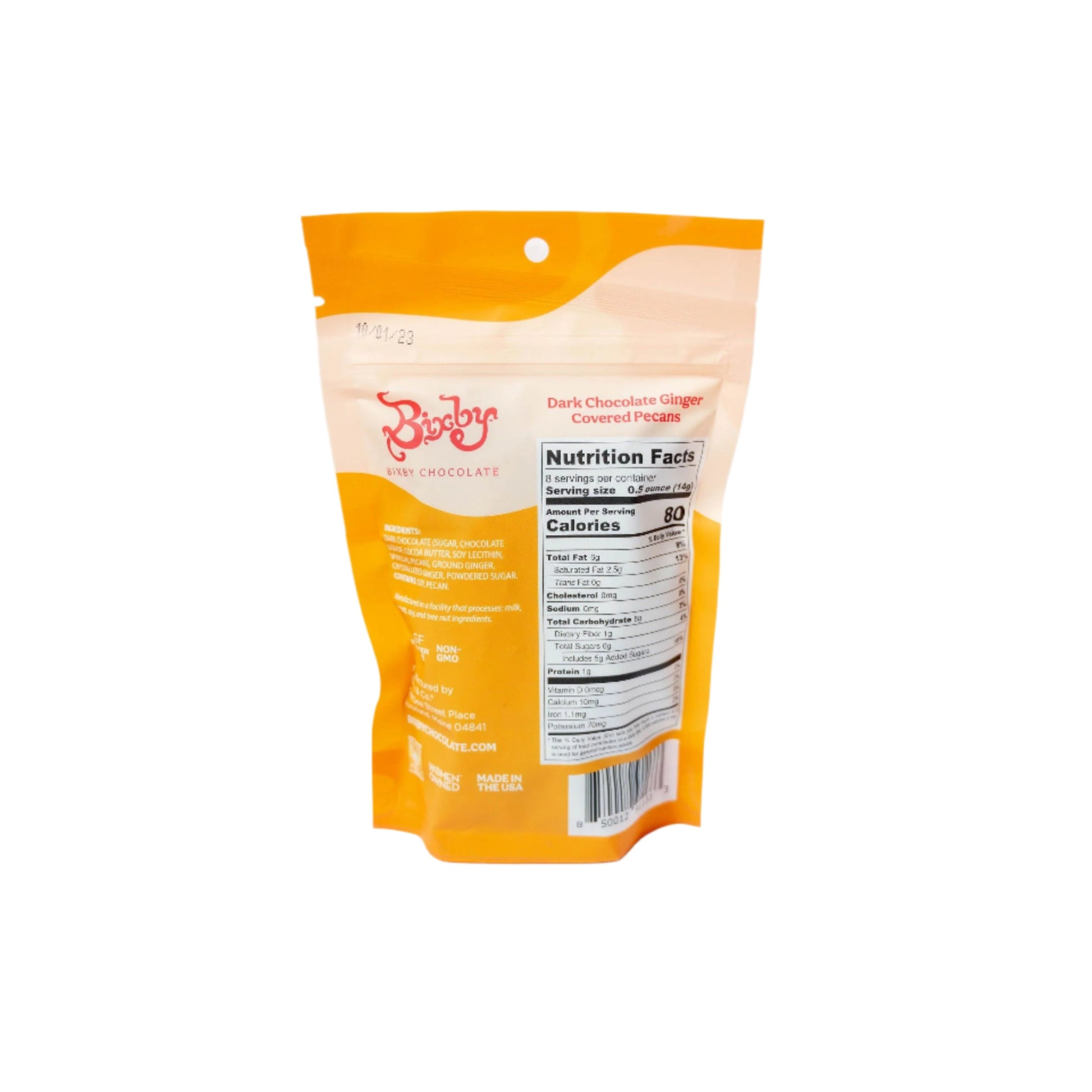 Dark Chocolate covered gingered pecans. Gluten Free and Vegan.