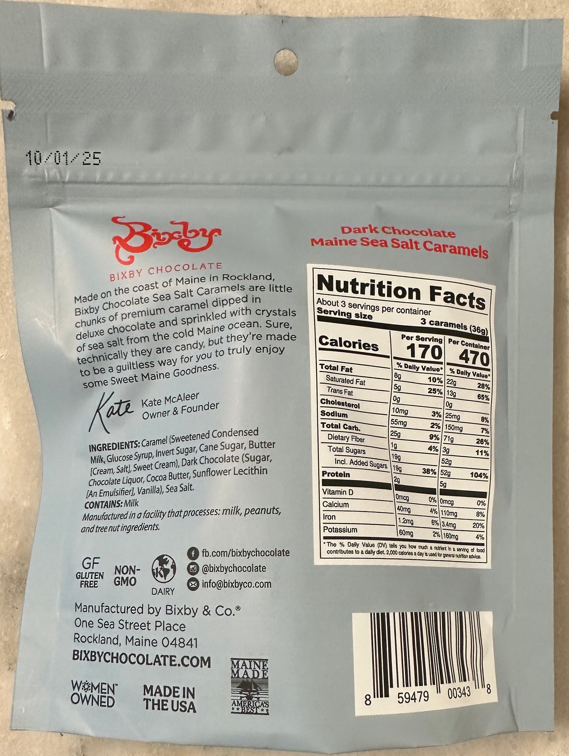 Made on the coast of Maine in Rockland, Bixby Chocolate Sea-Salted Caramels are little chunks of premium caramel dipped in deluxe dark chocolate sprinkled with crystal of sea salt from the cold Maine ocean. Sure, technically they are candy, but they’re made to be a guiltless way for you to truly enjoy some Sweet Maine Goodness.