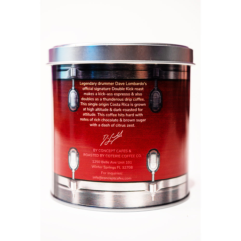 Legendary drummer Dave Lombardo's official signature Double Kick roast makes a kick-ass espresso & also doubles as a thunderous drip coffee. This single origin Costa Rica is grown at high altitude & dark-roasted for attitude. This coffee hits hard with notes of rich chocolate & brown sugar with a dash of citrus zest.