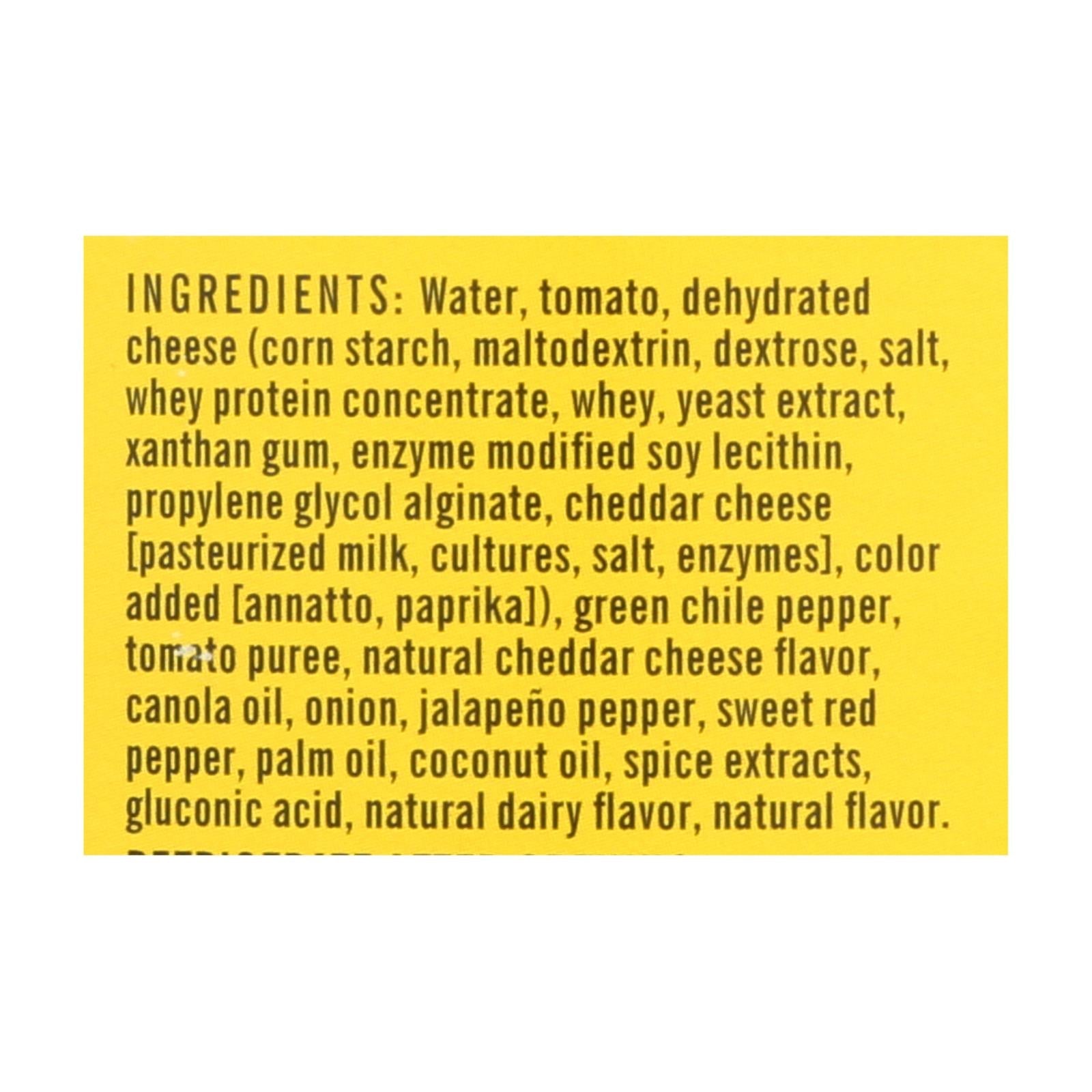 This delightful medium-spicy dip offers a rich blend of red and green chiles perfectly mixed with golden cheddar cheese, creating a sensational taste that will transport your taste buds to the heart of Tex-Mex cuisine. Free from preservatives, this authentic dip is crafted in the United States to ensure quality and freshness. Each 16 oz jar of this flavorful chile con queso is perfect for gatherings or everyday snacking.